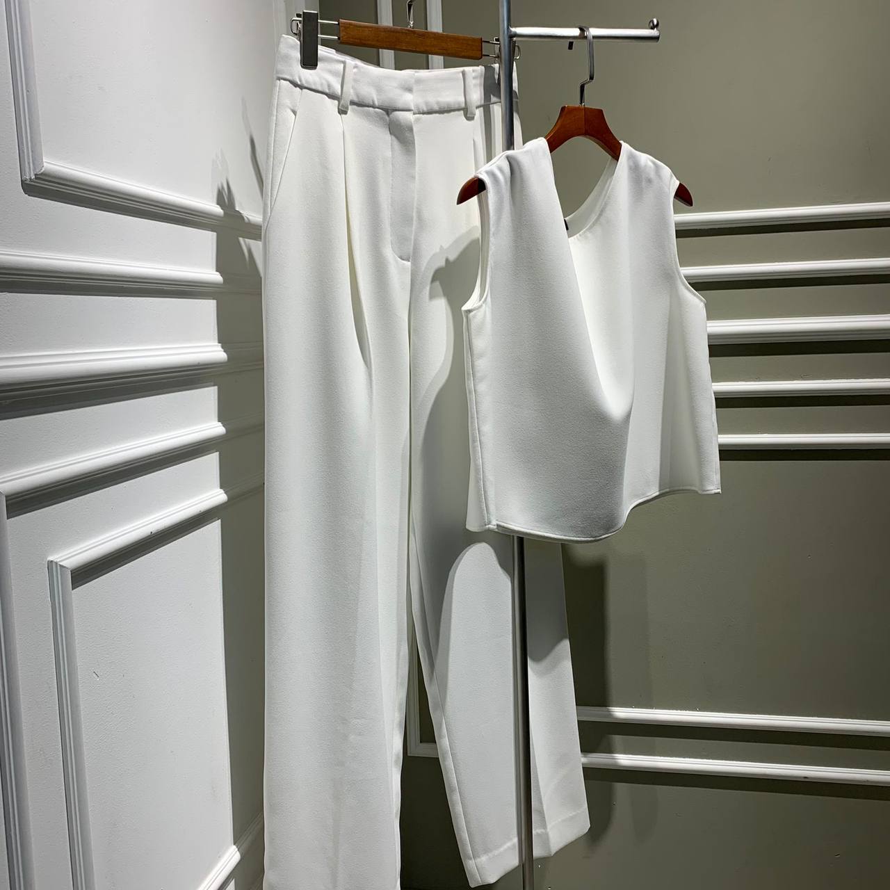 Костюм LUX-70642 – это стильный комплект, состоящий из брюк и топа, выполненный в элегантном белом цвете. Этот костюм подойдет для создания как повседневных, так и более формальных образов. Благодаря своему дизайну, он подчеркнет индивидуальность и чувство стиля.