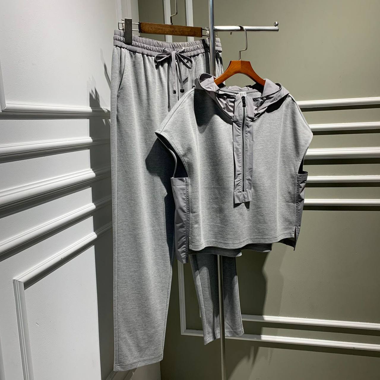 Костюм LUX-70643 представляет собой стильный и современный спортивный костюм. Он выполнен в сером цвете, что делает его универсальным для различных образов. Этот костюм идеально подходит для повседневной носки, прогулок и занятий спортом.