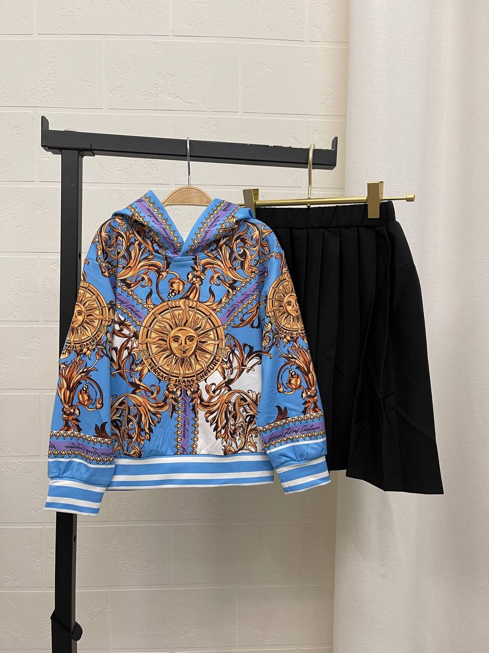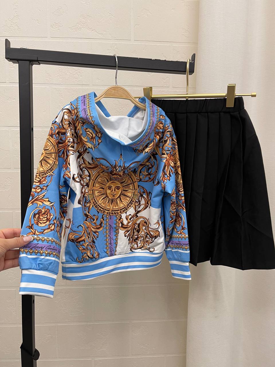 Костюм LUX-101826 - это сочетание стильного худи и плиссированной юбки. Худи выполнено в ярких оттенках голубого и золотистого, украшено роскошным узором. Юбка классического черного цвета добавляет контраст и элегантность образу. Этот костюм подойдет для создания как повседневных, так и более нарядных образов.