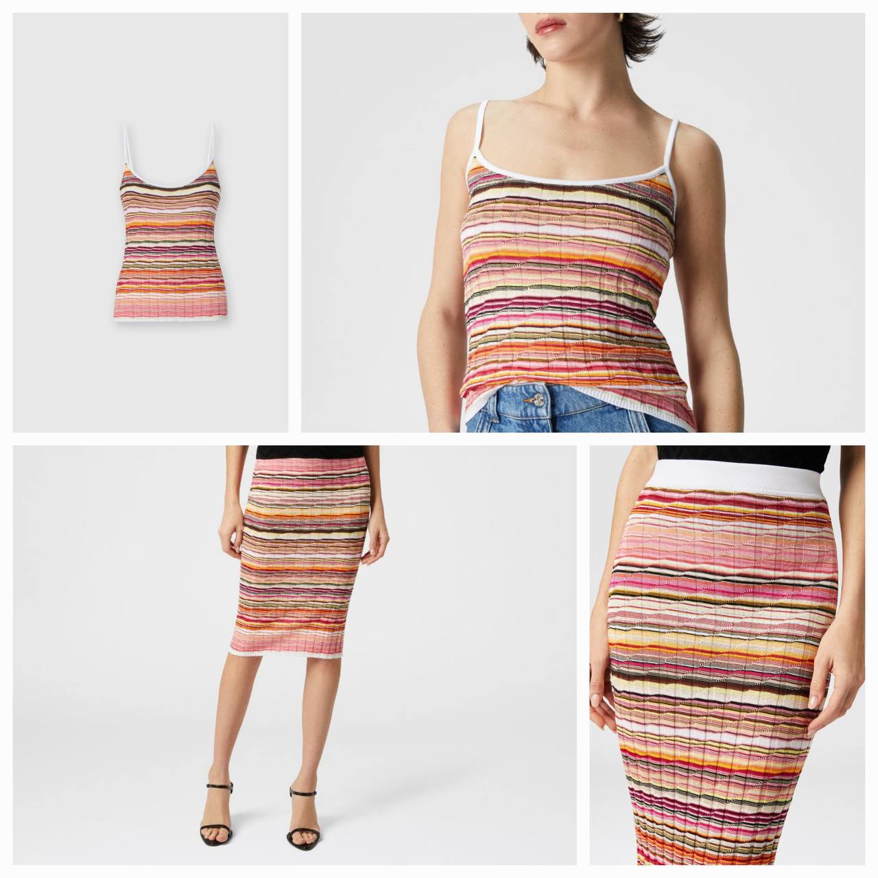 Костюм LUX-121070 от Luxe Crime - это стильный и яркий комплект, включающий в себя топ на бретельках и юбку-карандаш, выполненный в привлекательной разноцветной полоске. Он идеально подходит для создания эффектного и запоминающегося образа.