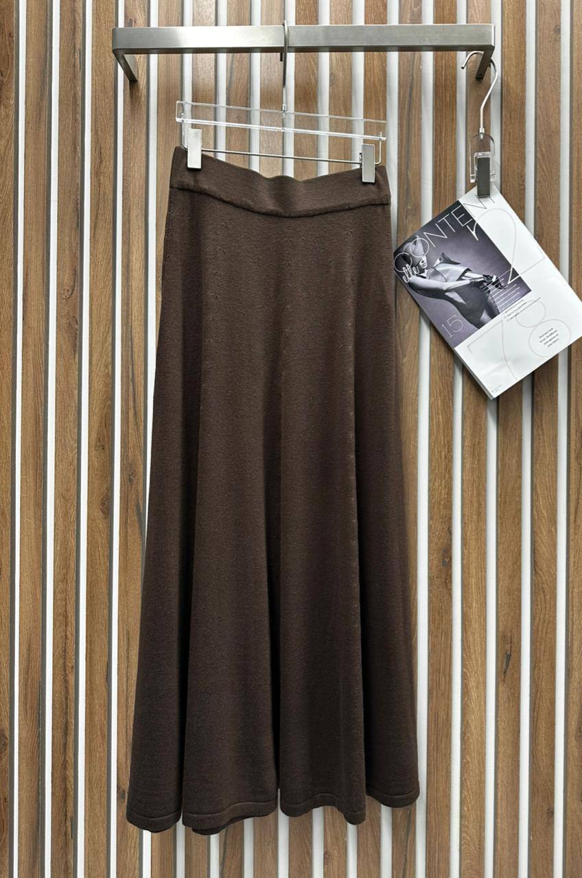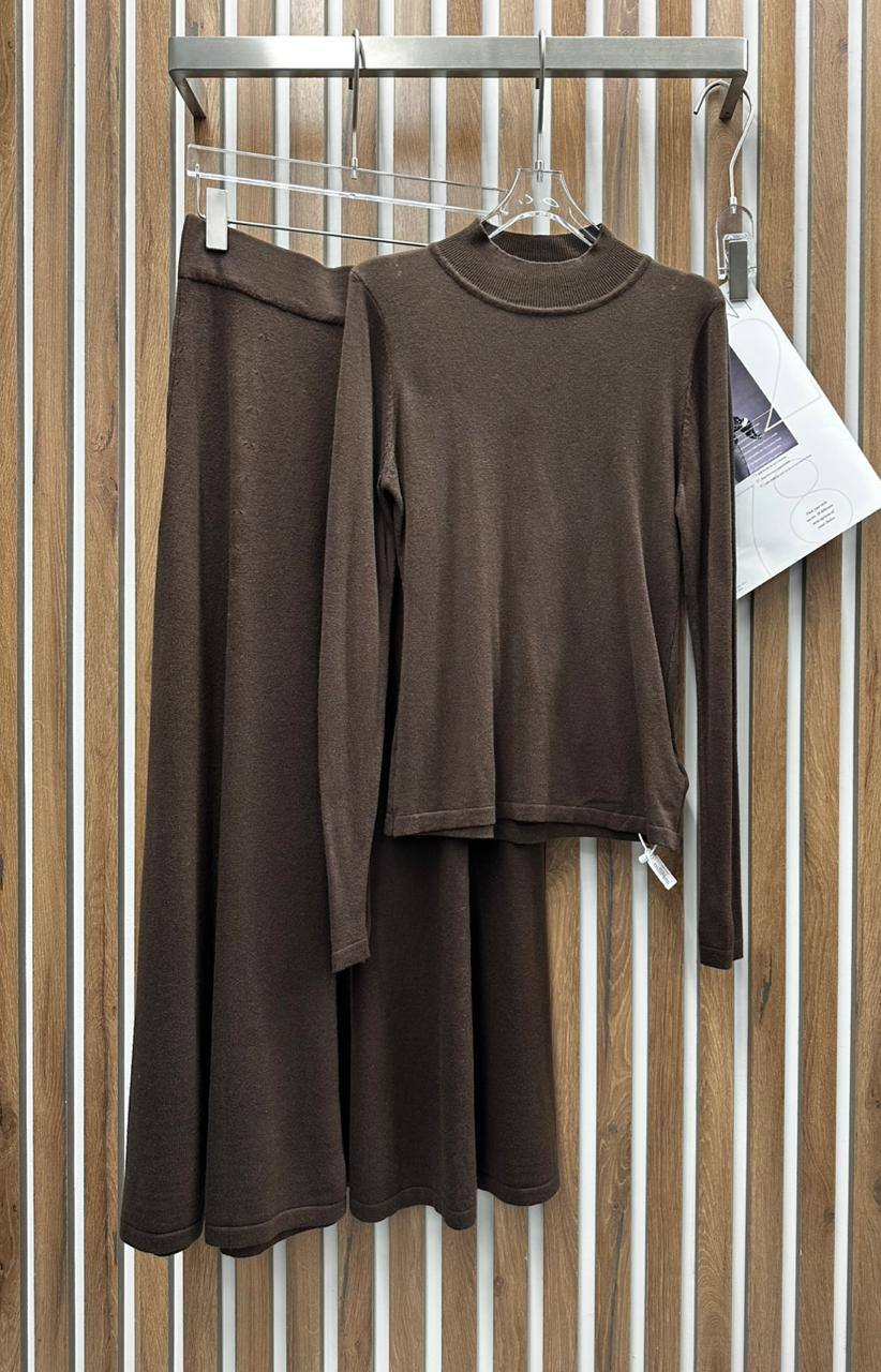 Этот элегантный костюм в стиле casual представляет собой идеальное сочетание комфорта и изысканности. Он выполнен в приятном коричневом оттенке и включает в себя юбку и кофту с длинным рукавом. Прекрасный выбор для создания стильного и непринужденного образа.