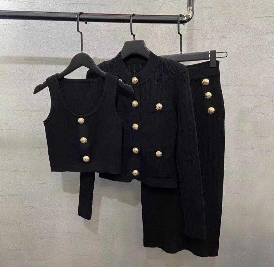 Костюм 3-ка LUX-75029 представляет собой стильный комплект, состоящий из топа, жакета и юбки. Комплект выполнен в черном цвете, который добавляет элегантности. Такой костюм идеально подойдет для создания как повседневных, так и более формальных образов.