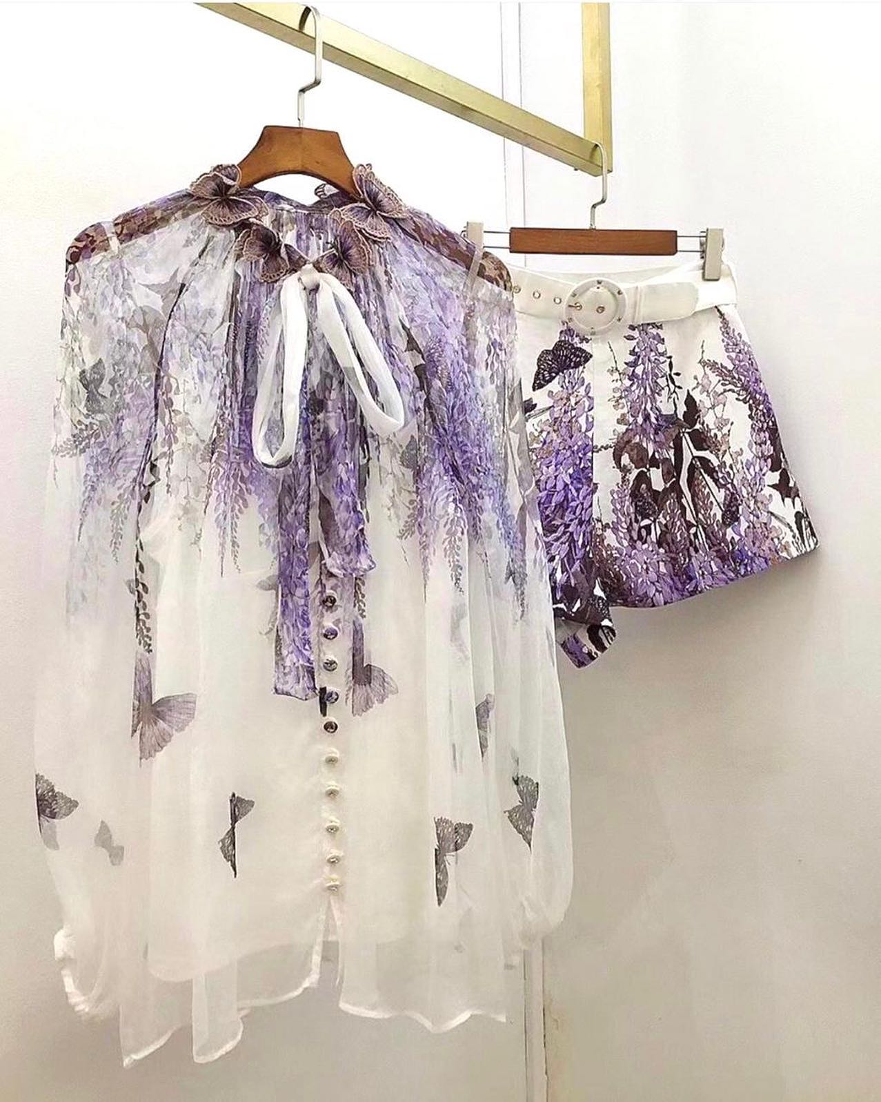 Этот женский костюм Zimmermann LUX-47154 представляет собой элегантный выбор для летнего сезона. Комплект, состоящий из блузы и шорт, выполнен в нежном стиле с живописным принтом. Блуза украшена оборками у воротника и бантом-завязкой, а также застегивается на пуговицы. Шорты дополнены стильным белым поясом с массивной пряжкой.