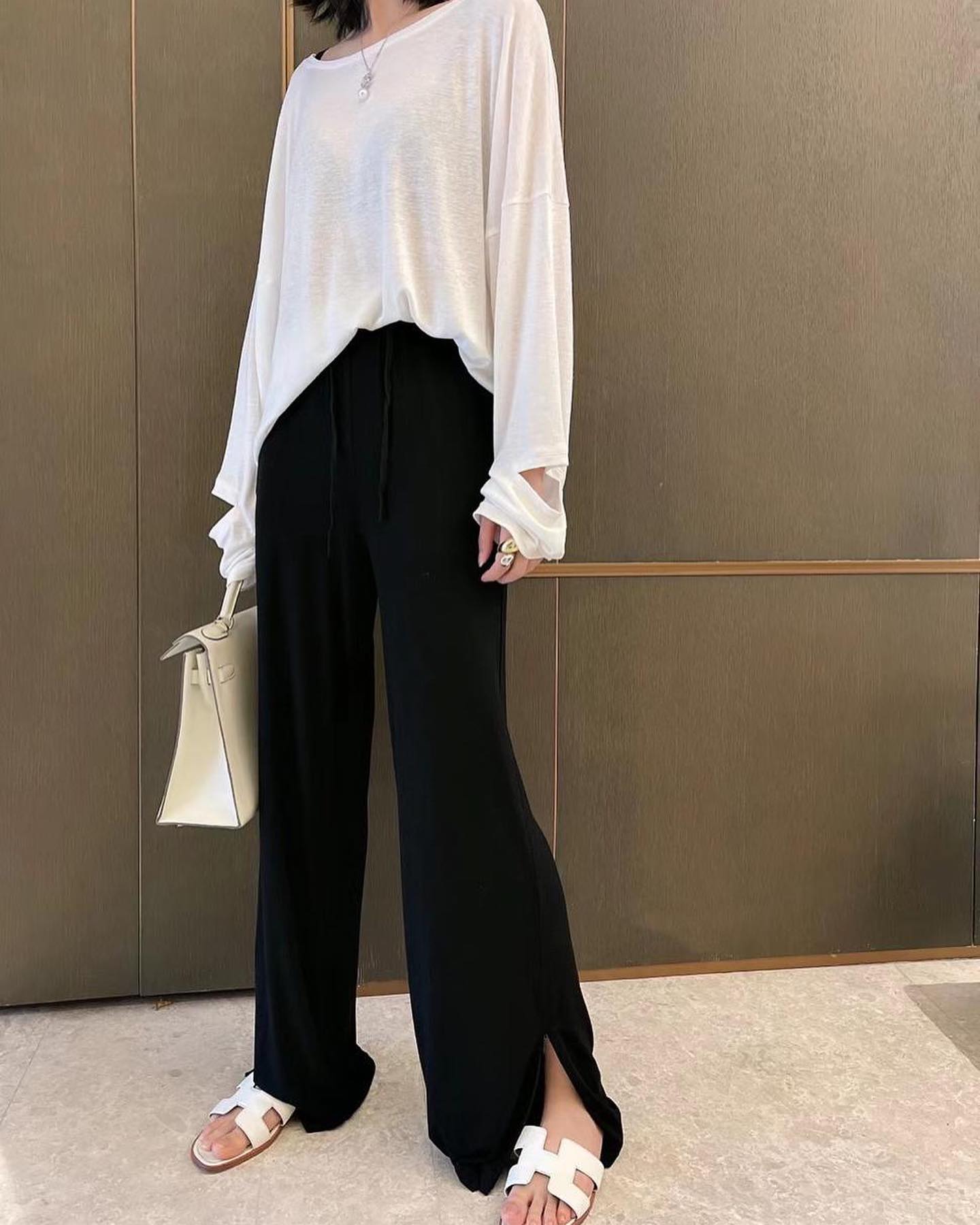 Костюм LUX-47512 представляет собой элегантный ансамбль, состоящий из черных брюк и белого лонгслива, выполненный в современном минималистичном стиле. Этот комплект идеально подходит для создания стильных повседневных образов, сочетая в себе комфорт и модный дизайн.