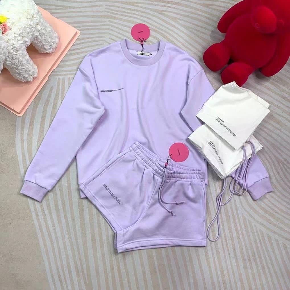 Этот спортивный костюм, состоящий из свитшота и шорт, выполнен в нежном лавандовом цвете. Минималистичный дизайн с небольшими принтами на груди и бедре подчеркивает его современный стиль. Костюм идеально подходит для создания расслабленных, но в то же время стильных образов на каждый день, будь то домашний отдых или прогулка.