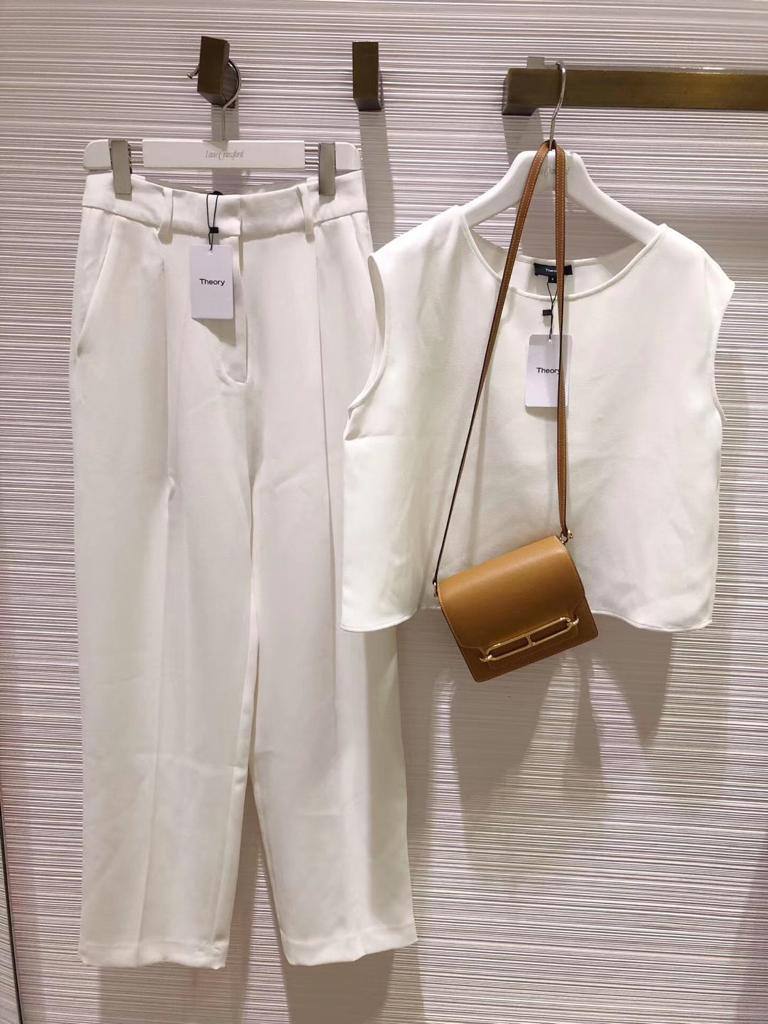 Представленный костюм LUX-50270 бренда Theory — это элегантный и современный выбор для женщин, предпочитающих минимализм и комфорт. Комплект состоит из укороченного топа без рукавов и брюк свободного кроя. Белый цвет и лаконичный дизайн делают его универсальным для различных образов, от повседневных до вечерних.