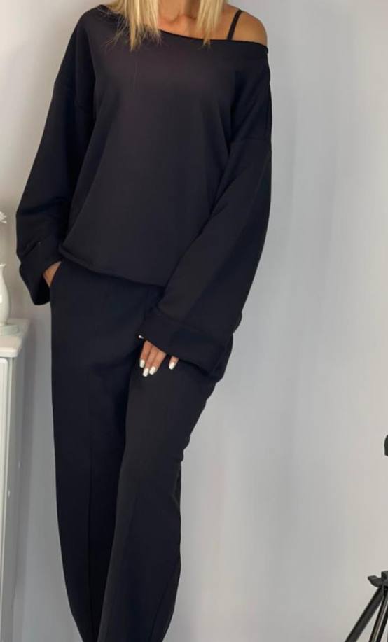 Стильный женский костюм LUX-48617 — это идеальный выбор для создания элегантных и комфортных образов. Костюм состоит из свободной кофты с длинными рукавами и прямых брюк, выполненных в классическом черном цвете. Модель подходит для повседневного ношения, прогулок и встреч с друзьями.