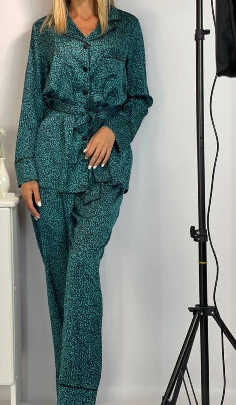 Костюм LUX-48620 – это элегантный комплект, состоящий из рубашки с длинным рукавом и брюк. Свободный крой и принт в виде леопардовых пятен делают его стильным решением для дома. Пояс на рубашке и брюках позволяет регулировать посадку.