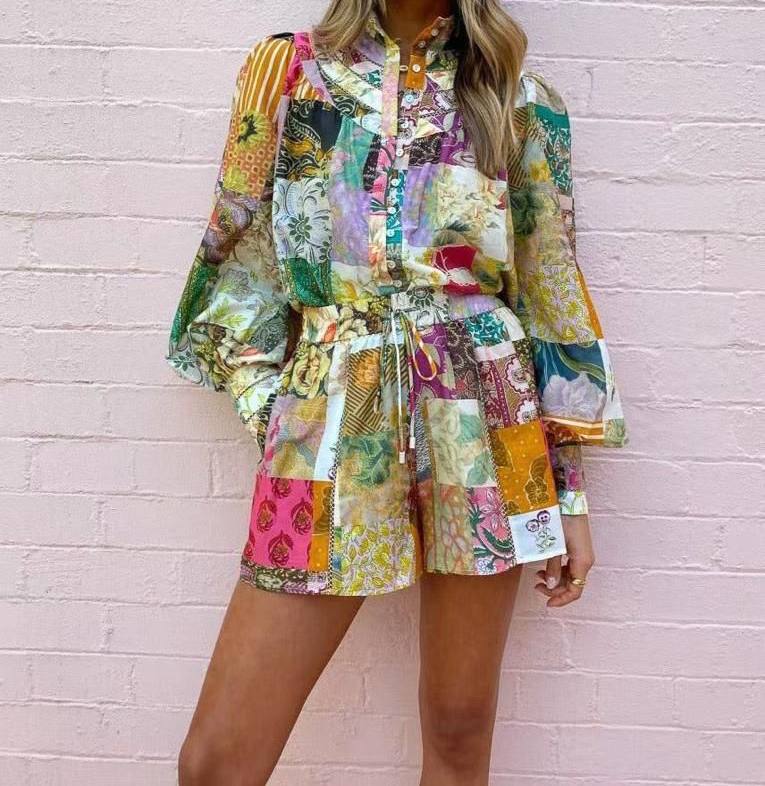 Костюм Alemais LUX-88862 — это яркий и стильный комплект, состоящий из рубашки с длинными рукавами и шорт. Дизайн костюма выполнен в технике пэчворк, сочетая в себе разноцветные лоскуты с различными принтами, создавая неповторимый и запоминающийся образ. Этот костюм подойдет для создания эффектных летних образов, подчеркивающих индивидуальность.