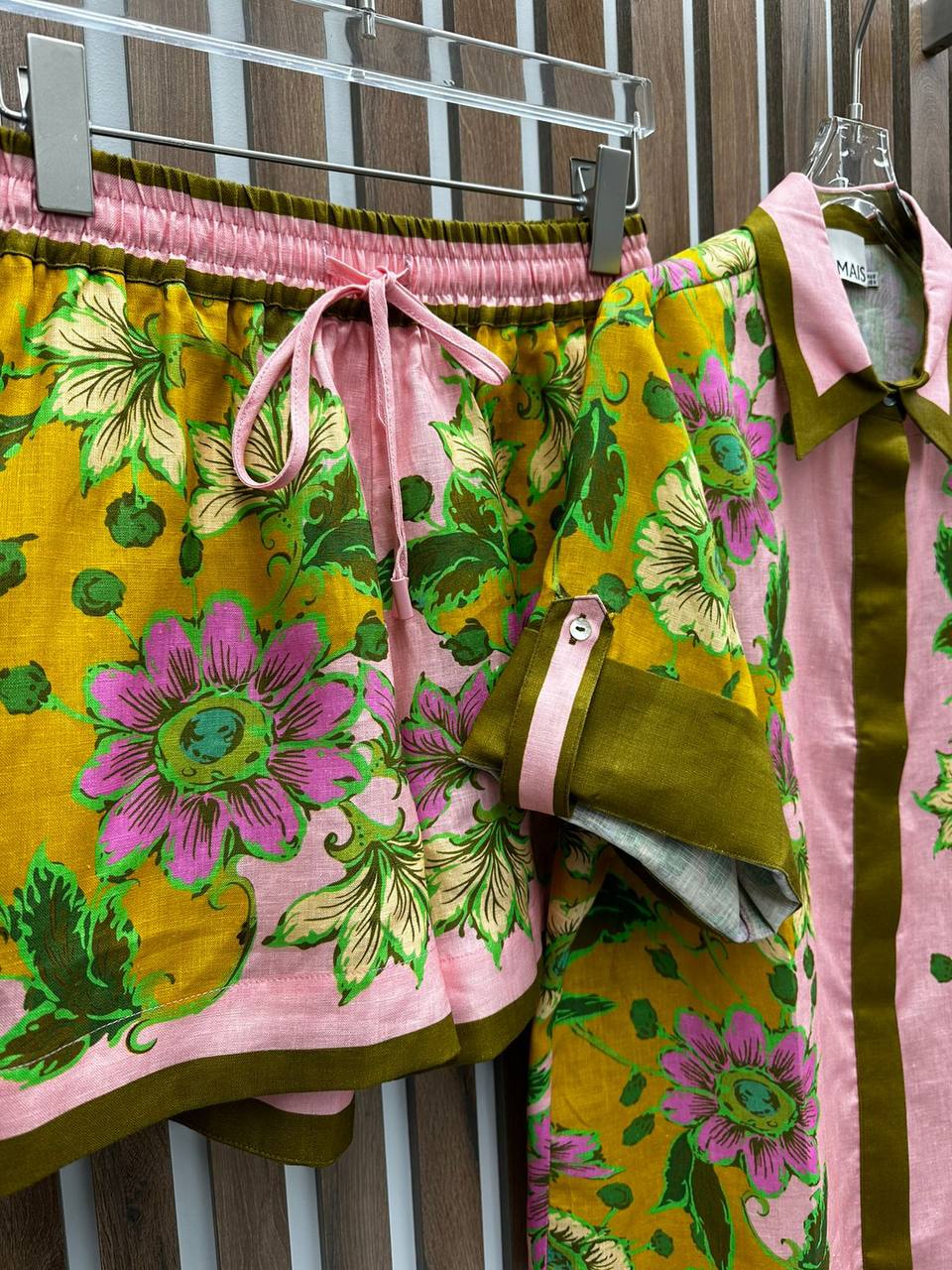 Костюм Alemais LUX-89295 – это яркий и стильный комплект, состоящий из рубашки с короткими рукавами и шорт. Костюм выполнен в нежных розовых и желтых тонах с цветочным принтом. Его дизайн подчеркнет вашу индивидуальность и станет отличным выбором для создания летних образов.