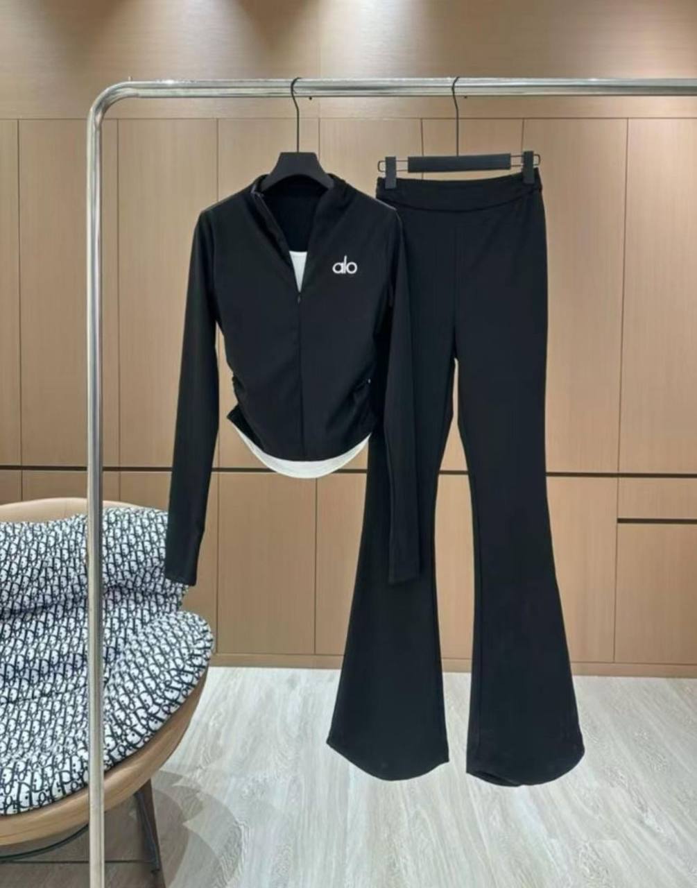 Костюм Alo LUX-116210 — это стильный спортивный костюм для активного образа жизни. Комплект выполнен в черном цвете и включает в себя куртку на молнии и расклешенные брюки. Лаконичный дизайн костюма подчеркивает его элегантность и позволяет легко сочетать его с другими элементами гардероба.