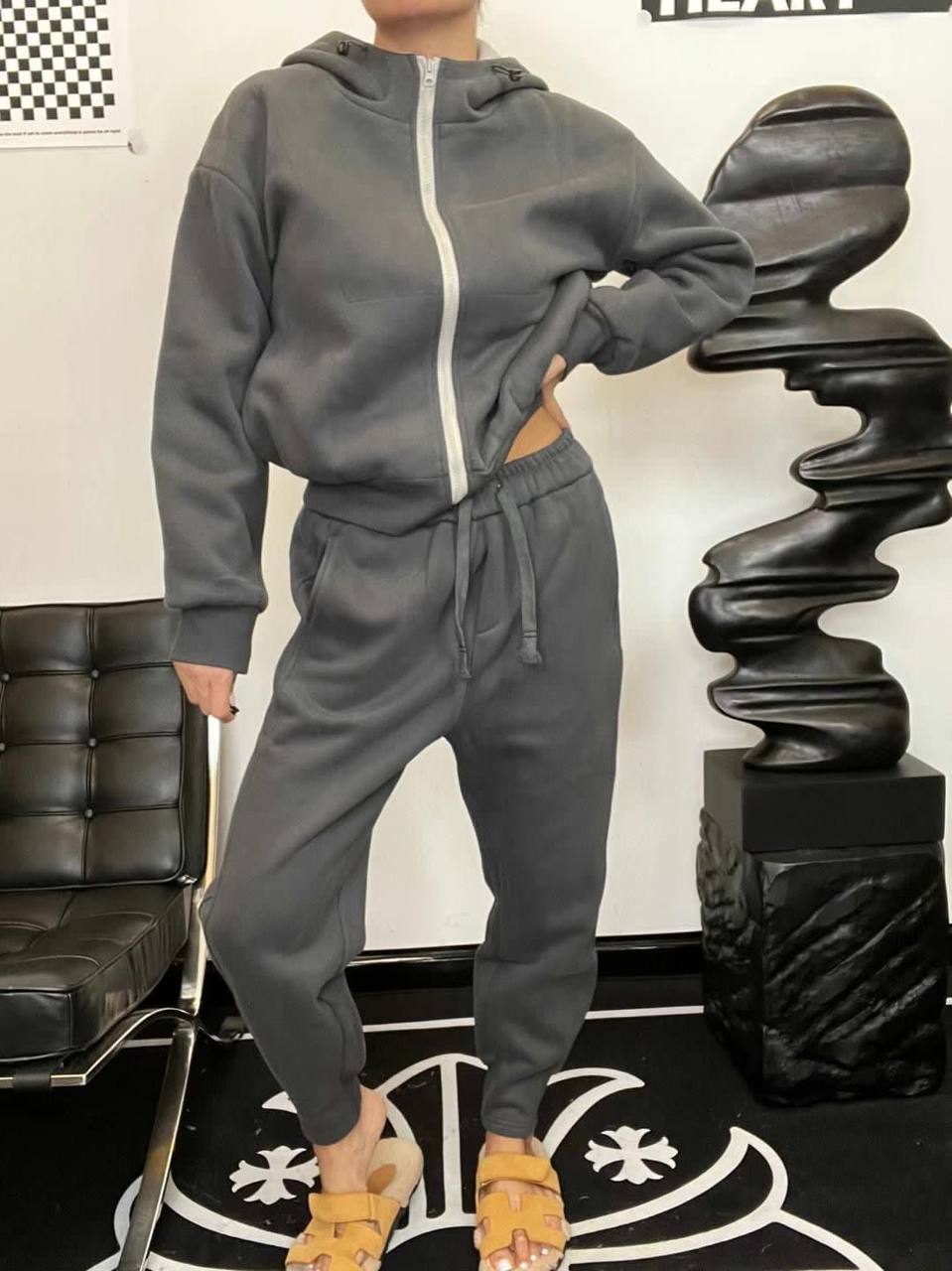 Костюм спортивный LUX-80991 — это комфортный спортивный костюм для повседневной носки, выполненный в современном стиле. Комплект состоит из худи на молнии и брюк. Спокойный серый цвет делает костюм универсальным и подходящим для разных ситуаций.
