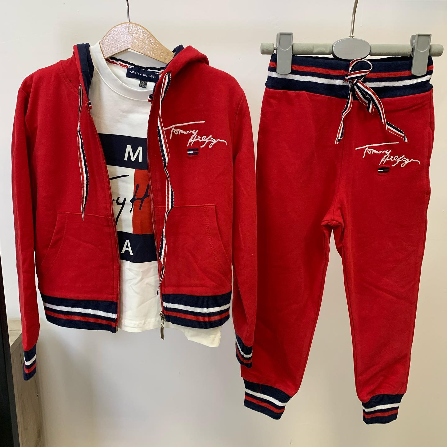 Представляем спортивный костюм Tommy Hilfiger LUX-35408, выполненный в ярком красном цвете. Этот комплект, состоящий из худи на молнии и брюк, идеально подходит для создания стильных повседневных образов. Классическое сочетание красного, синего и белого цветов, фирменная вышивка и логотип Tommy Hilfiger подчеркивают узнаваемый стиль бренда.