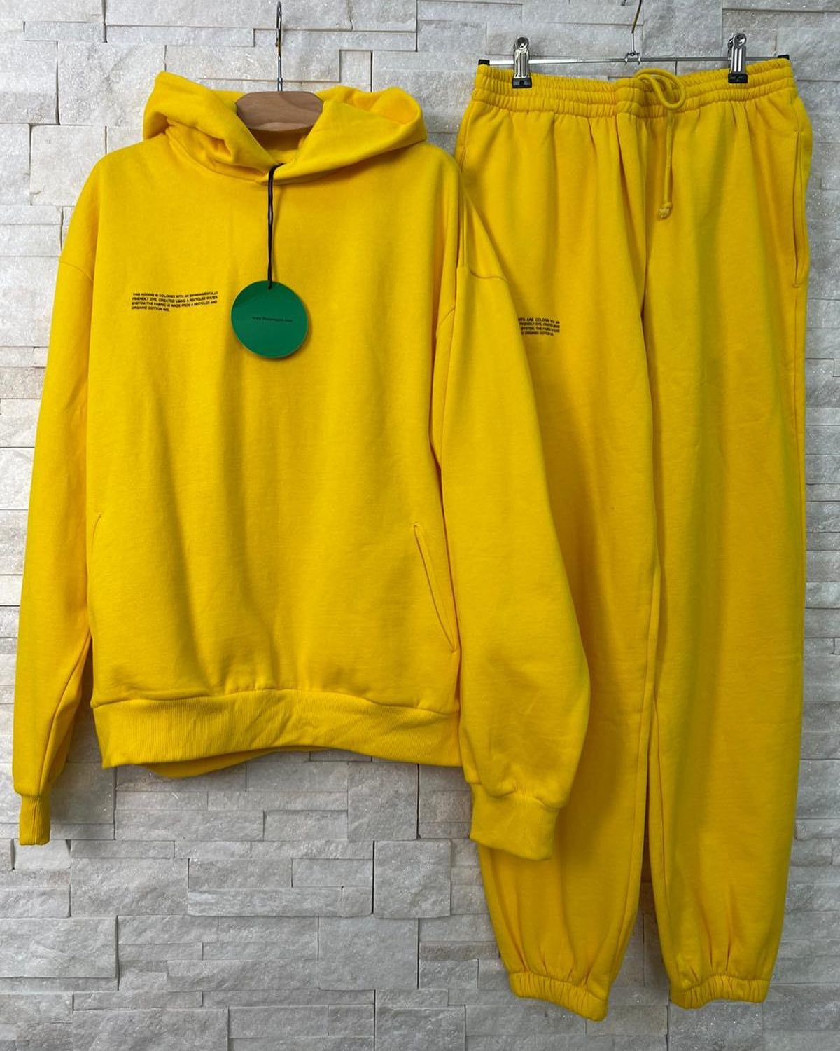 Представленный костюм спортивный Pangaia LUX-35716 — это современный комплект, сочетающий стиль и комфорт. Этот спортивный костюм, выполненный в ярком желтом цвете, идеально подходит для создания непринужденных образов.