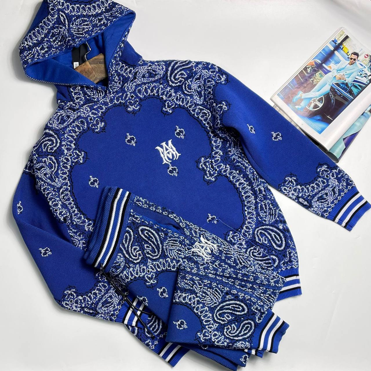 Костюм спортивный LUX-86990 – это стильный комплект в спортивном стиле. Он выполнен в ярком синем цвете с белым узором. Костюм предназначен для повседневной носки, обеспечивая комфорт и выразительность.