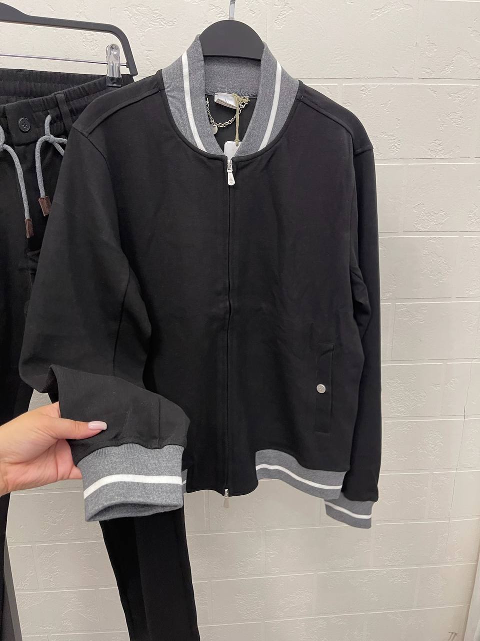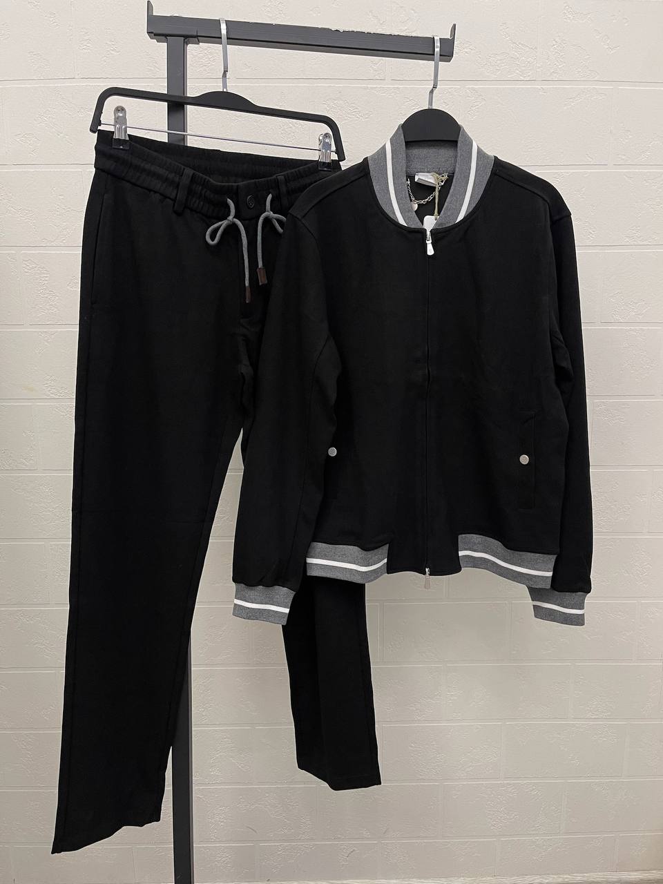 Костюм спортивный Eleventy LUX-110588 – это стильный спортивный костюм черного цвета, сочетающий в себе комфорт и элегантность. Комплект состоит из куртки-бомбера и брюк. Контрастные детали серого и белого цветов добавляют образу выразительность. Костюм идеально подходит для повседневной носки, прогулок или активного отдыха.