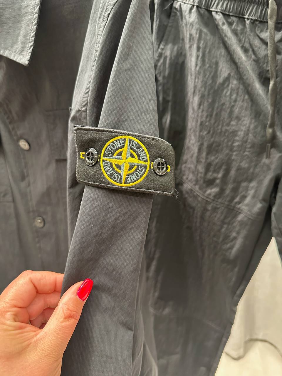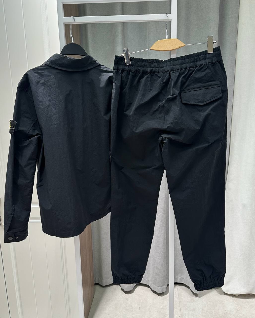 Костюм Stone Island LUX-119238 - это стильный комплект одежды, состоящий из куртки и брюк. Костюм выполнен в черном цвете, что делает его универсальным для различных образов. Текстура ткани, вероятно, имеет легкий блеск. Предназначен для повседневного ношения, подчеркивая современный стиль.