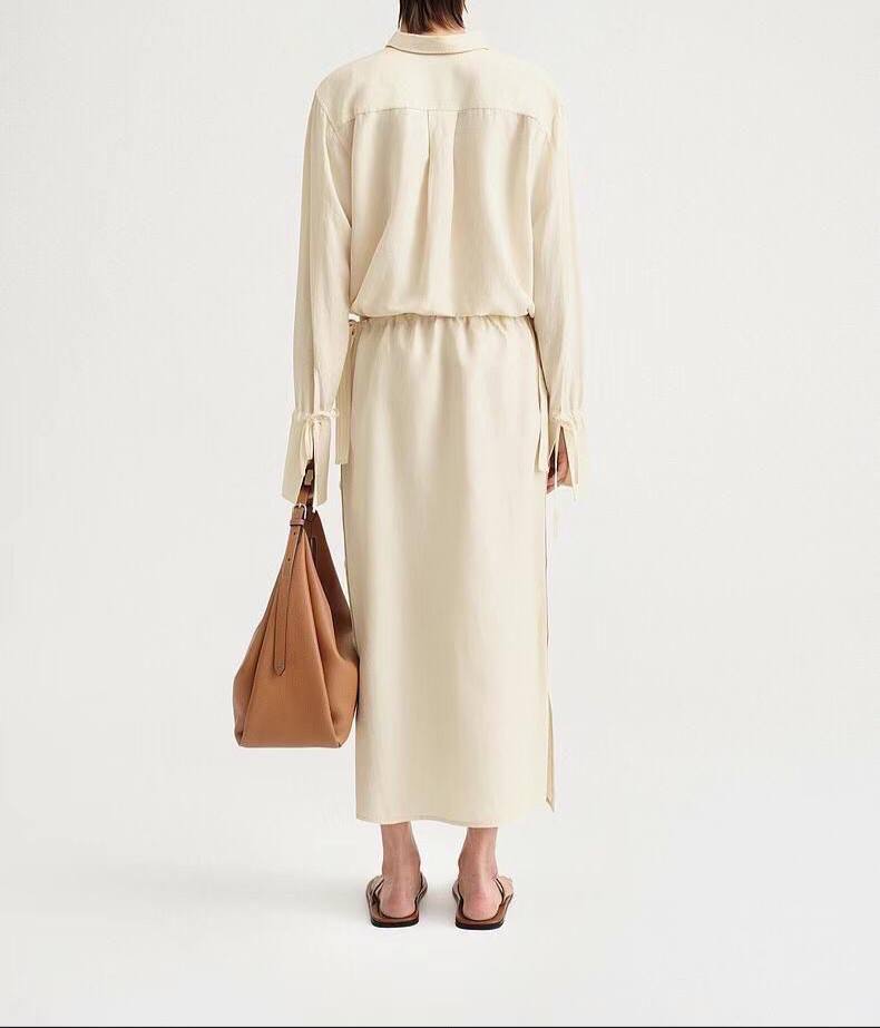 Костюм Toteme LUX-88629 - это элегантный ансамбль, выполненный в минималистичном стиле. Он состоит из рубашки и юбки цвета слоновой кости. Текстура ткани создает ощущение легкости и воздушности, идеально подходящей для повседневного образа.