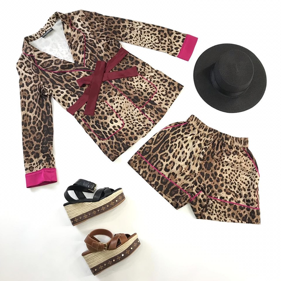 Этот женский костюм от LUXE-CRIME, артикул LUX-14702, выполнен в стиле домашней одежды с ярким анималистичным принтом. Комплект состоит из рубашки с длинными рукавами и шорт, декорированных контрастной окантовкой и дополненных поясом. Идеальный выбор для стильного отдыха дома или расслабленных летних образов.