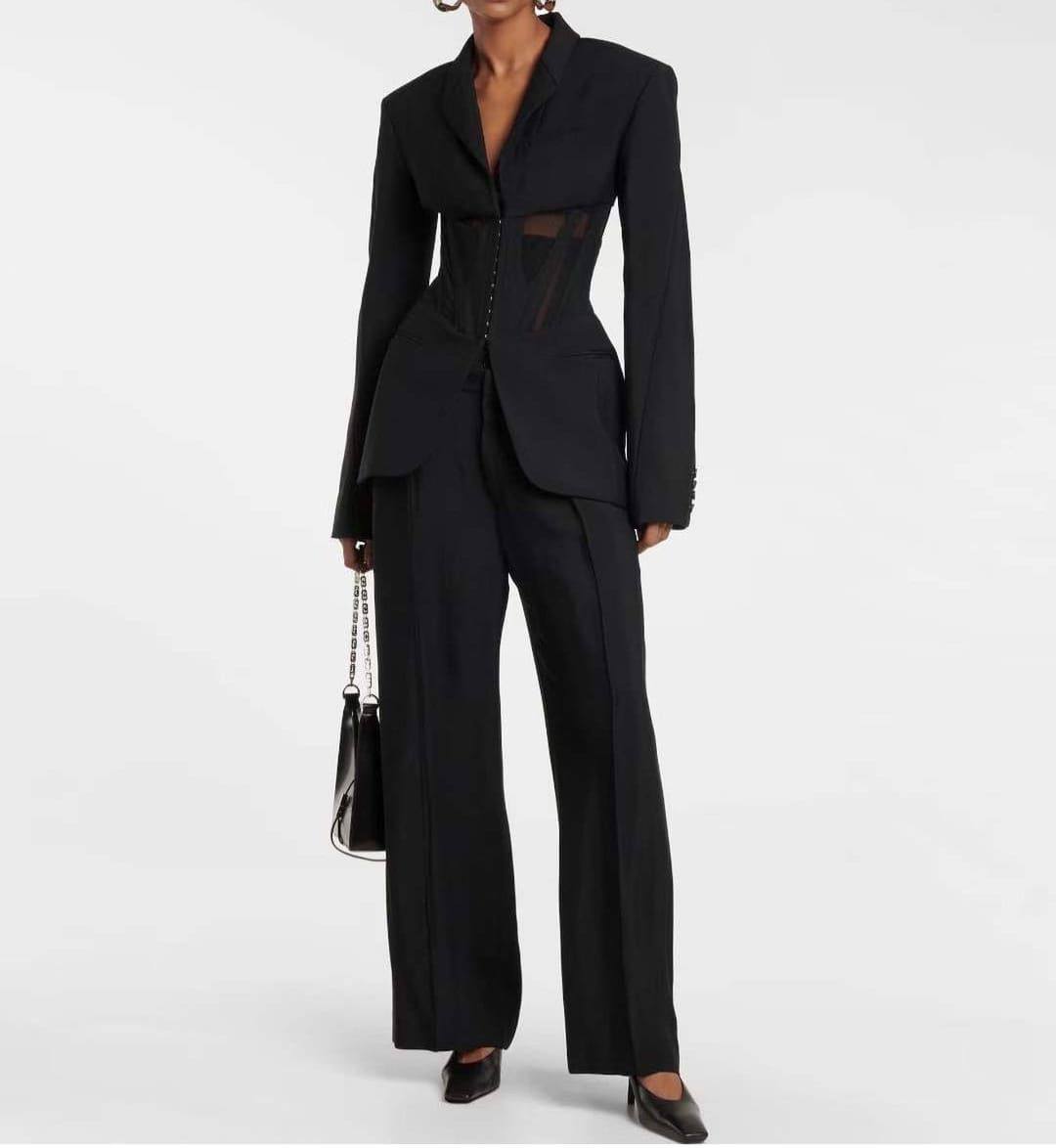 Костюм женский LUX-89608 – это элегантный ансамбль, который состоит из пиджака с корсетным лифом и классических брюк. Костюм выполнен в черном цвете, который добавляет образу строгости и стиля. Этот костюм подойдет для создания эффектных образов для различных мероприятий.
