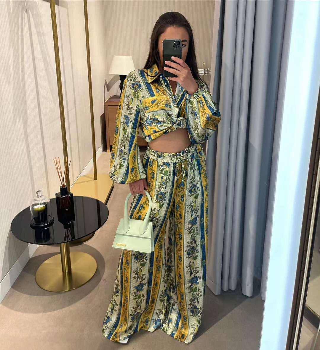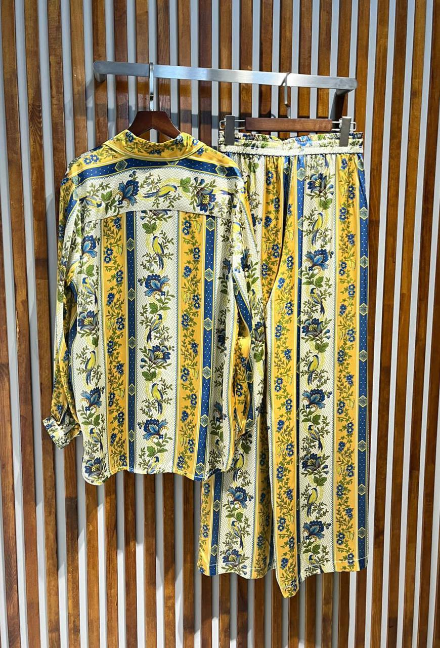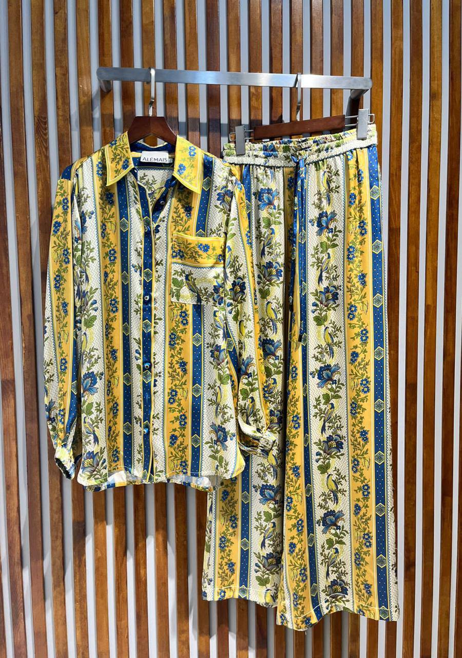 Костюм женский LUX-91639 представляет собой комплект в ярком стиле с цветочным принтом. Комплект состоит из рубашки с завязкой на талии и широких брюк. Сочетание цветов, узора и кроя делает его отличным выбором для создания стильного и запоминающегося образа.