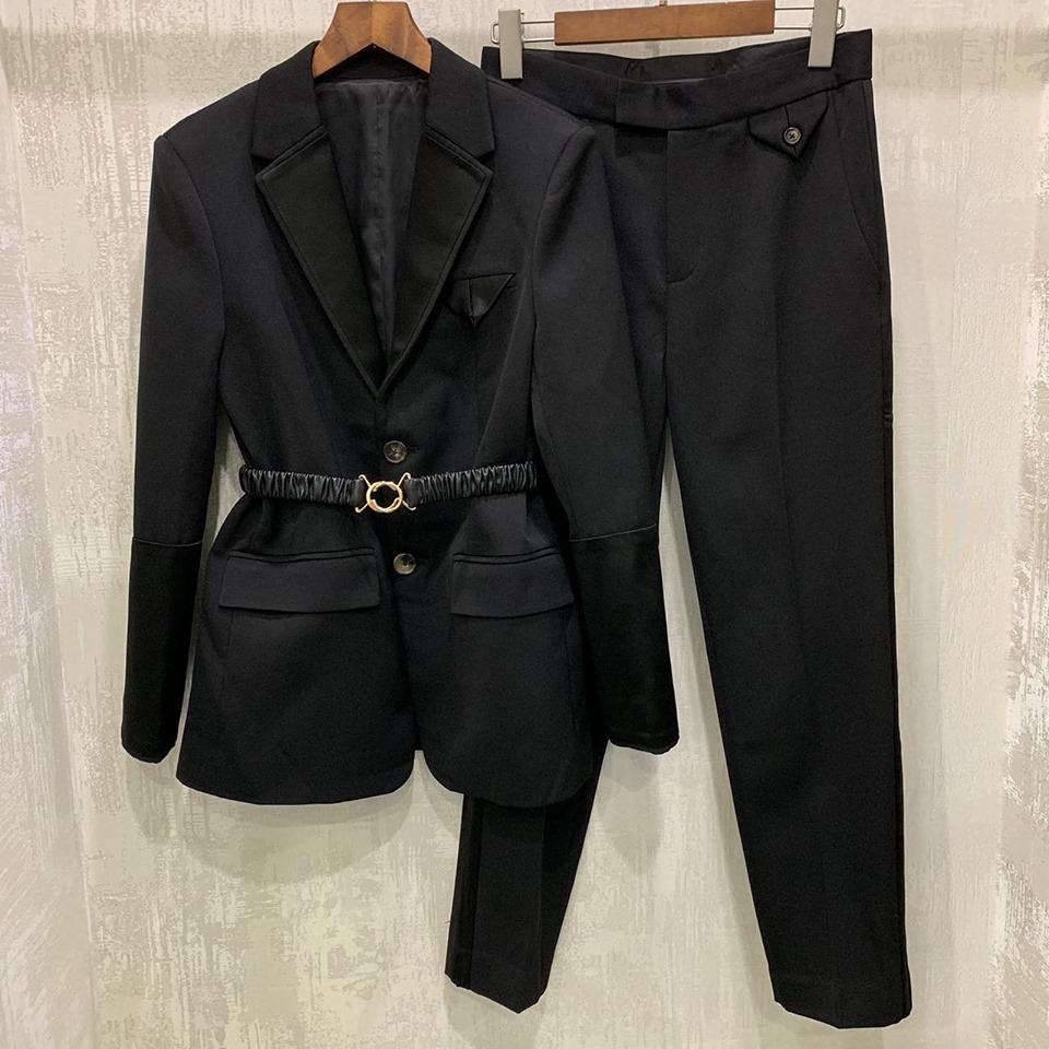 Этот элегантный женский костюм LUX-20311 от бренда LUXE CRIME отличается классическим черным цветом и строгим, но в то же время женственным силуэтом. Жакет приталенного кроя с поясом-резинкой, украшенным золотистой пряжкой, подчеркивает достоинства фигуры. Брюки прямого кроя создают лаконичный и завершенный образ. Этот костюм идеально подходит для деловых встреч, официальных мероприятий или создания утонченного повседневного стиля.