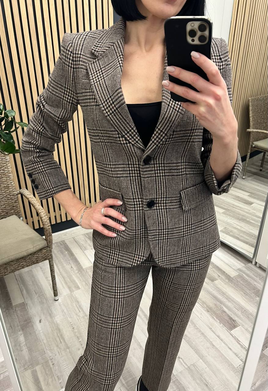 Костюм женский LUX-102198 представляет собой стильный классический костюм. Комплект, состоящий из пиджака и брюк, выполнен в коричнево-бежевой клетке. Этот костюм подойдет для создания элегантных образов, как для деловых встреч, так и для повседневной носки.