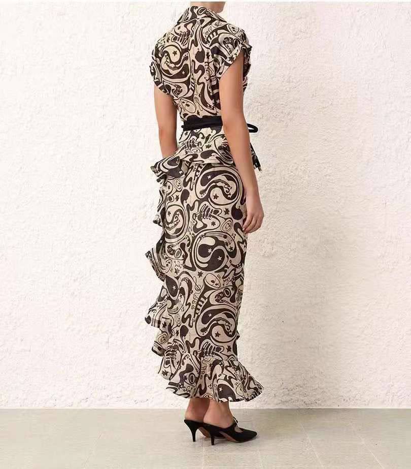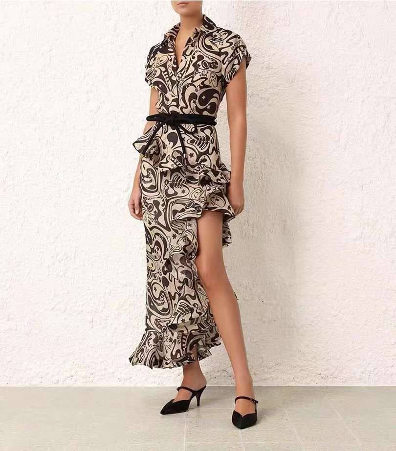 Костюм женский LUX-103270 представляет собой элегантное платье-рубашку с ярким принтом. Платье выполнено в сочетании бежевых и коричневых оттенков с абстрактным узором, дополняется черным поясом, подчеркивающим талию. Идеально подходит для создания стильного и запоминающегося образа.