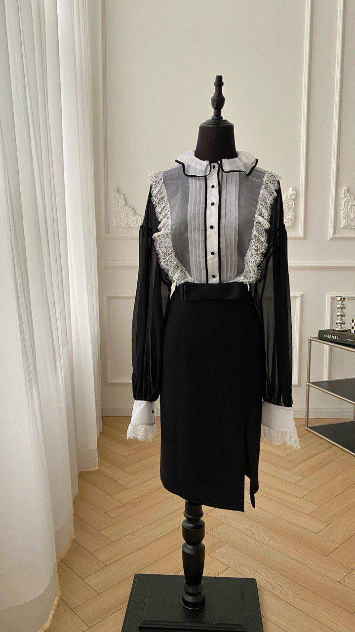 Костюм женский LUX-105973 представляет собой элегантный комплект, сочетающий в себе изысканный дизайн и женственность. Комплект состоит из блузы с деталями кружева и юбки-карандаш. Костюм выполнен в классическом стиле, подойдет для различных мероприятий.