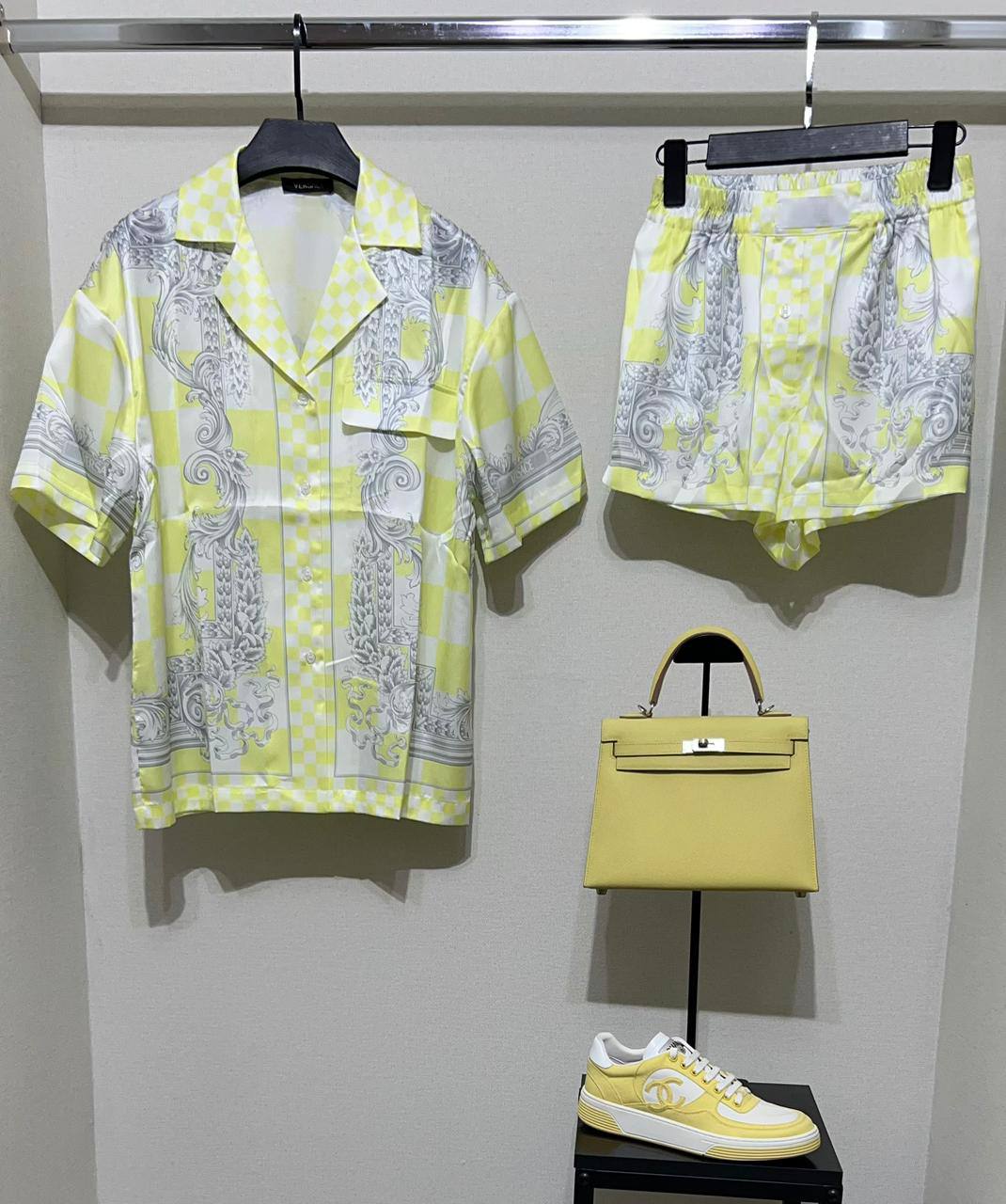 Костюм женский LUX-108338 представляет собой стильный комплект, состоящий из рубашки с короткими рукавами и шорт, выполненный в ярком сочетании желтого и белого цветов с замысловатым узором. Этот костюм подойдет для создания летних образов, сочетая в себе комфорт и современный дизайн.