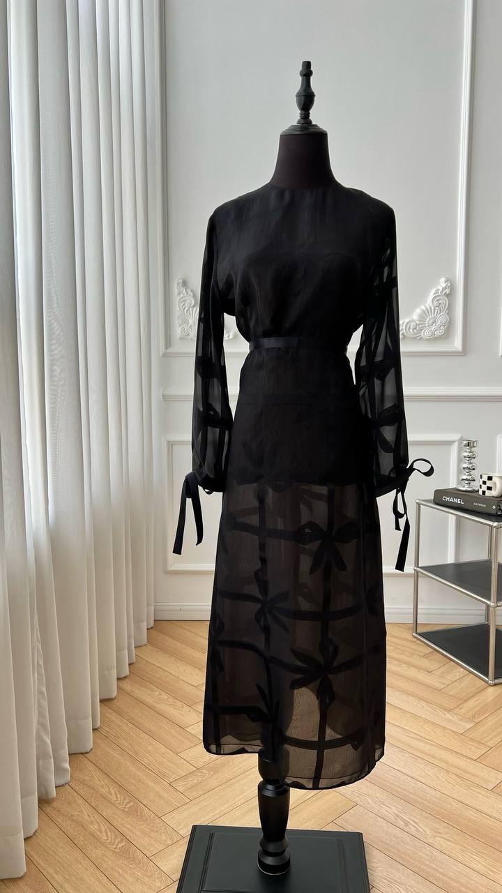 Костюм женский LUX-116566 представляет собой элегантный ансамбль, состоящий из черного платья с длинными рукавами и поясом. Дизайн платья выполнен в классическом стиле, подчеркивающем женственность и изысканность. Полупрозрачные рукава и подол с декоративными элементами добавляют образу легкость и оригинальность.