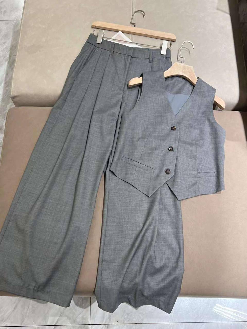 Костюм женский LUX-131346 в классическом стиле. Комплект состоит из жилета на пуговицах и широких брюк, выполненных в едином стиле. Идеальный выбор для создания элегантного и утонченного образа.