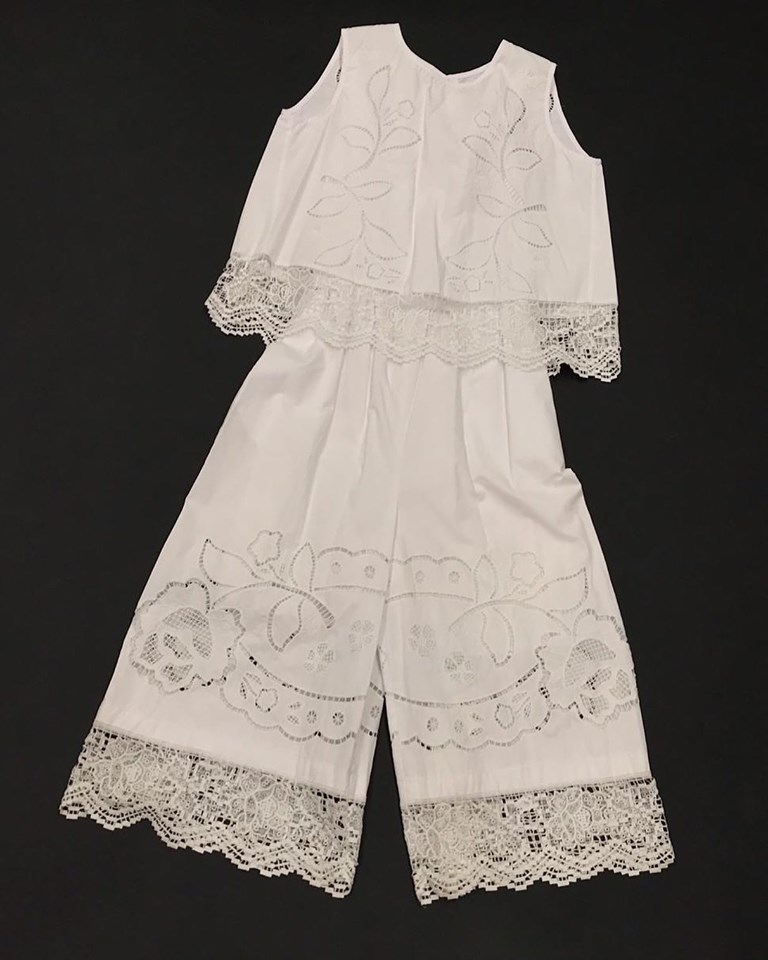 Этот женский брючный костюм LUX-13662 от бренда LUX воплощает в себе элегантность и изысканность. Комплект состоит из укороченного топа с вышивкой в стиле ришелье и широких брюк, украшенных аналогичным узором и кружевной отделкой. Дизайн костюма подчеркивает женственность и утонченность образа, делая его идеальным выбором для особых случаев или летнего гардероба.