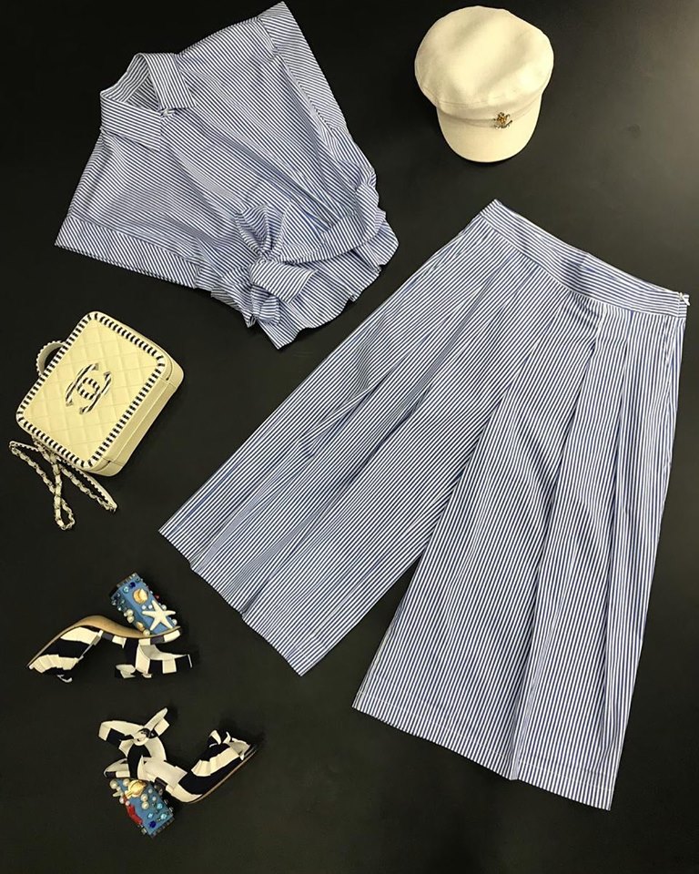 Костюм женский брючный LUX-13914 от бренда LUXE, выполненный в элегантном стиле, идеально подойдет для создания как повседневных, так и более изысканных образов. Сочетание классической рубашки и широких брюк в тонкую сине-белую полоску придает ему неповторимый шарм.
