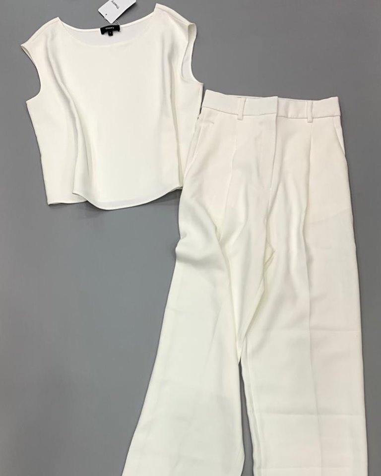 Представленный костюм женский брючный LUX-16279 от бренда LUXE CRIME — это воплощение элегантности и современного стиля. Он состоит из укороченной блузы без рукавов с круглым вырезом и широких брюк, что создает изысканный и актуальный силуэт. Этот комплект идеально подходит для создания как деловых, так и вечерних образов, подчеркивая утонченность своей обладательницы.