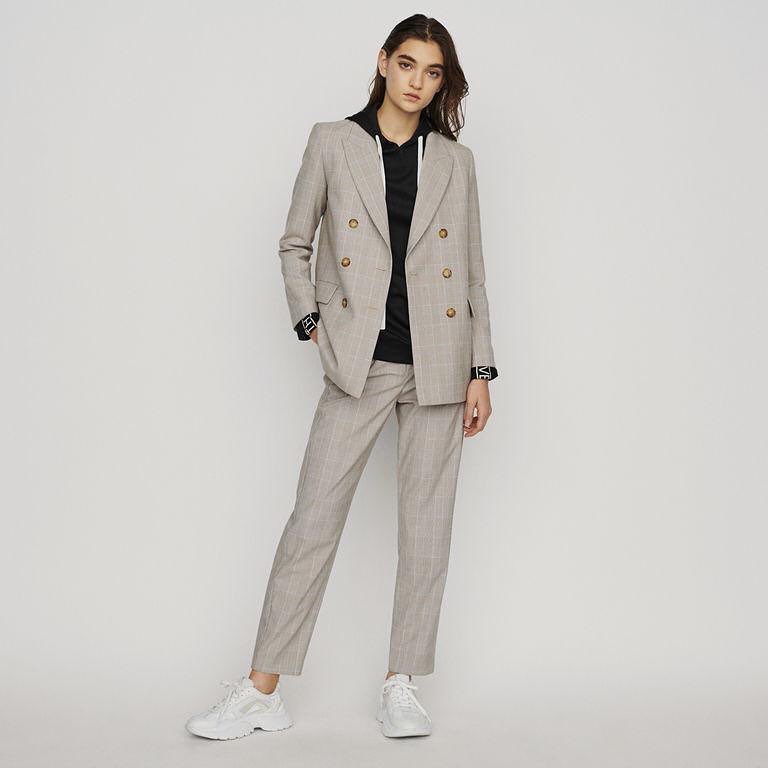 Костюм женский брючный Maje LUX-12625 представляет собой элегантный и современный комплект, состоящий из двубортного пиджака и брюк классического кроя. Модель выполнена в приглушенном бежевом цвете в мелкую клетку, что придает ей утонченный вид. Стиль костюма сочетает в себе классическую строгость и актуальные тренды, что делает его универсальным решением для различных образов.