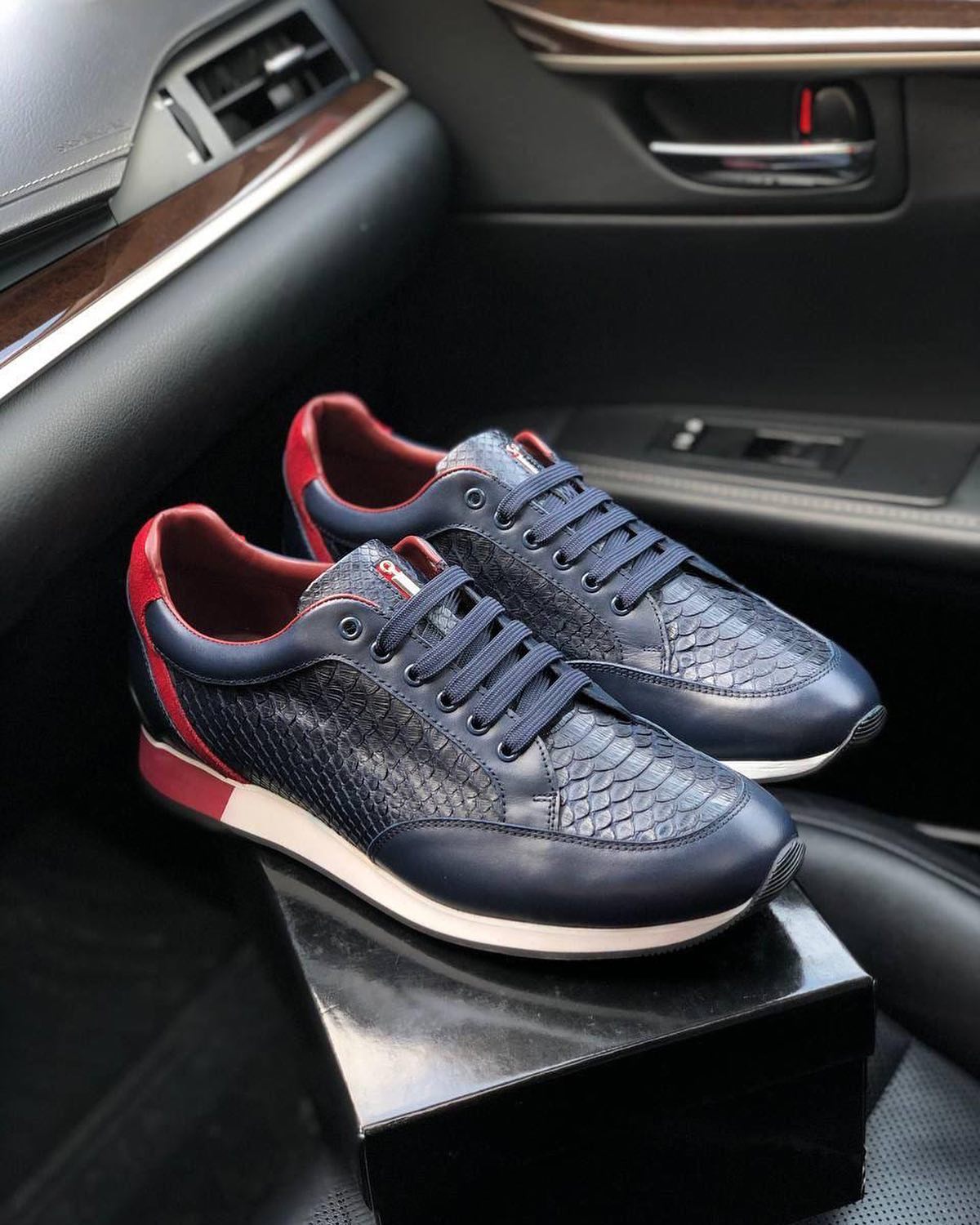 Стильные мужские кроссовки LUX-46348 от Luxe-Crime сочетают в себе классический дизайн и современные материалы, создавая элегантный и универсальный вариант для городского образа. Комбинация темно-синего цвета с текстурой под кожу рептилии и яркими красными акцентами, а также белая подошва делают эту модель эффектной и запоминающейся.