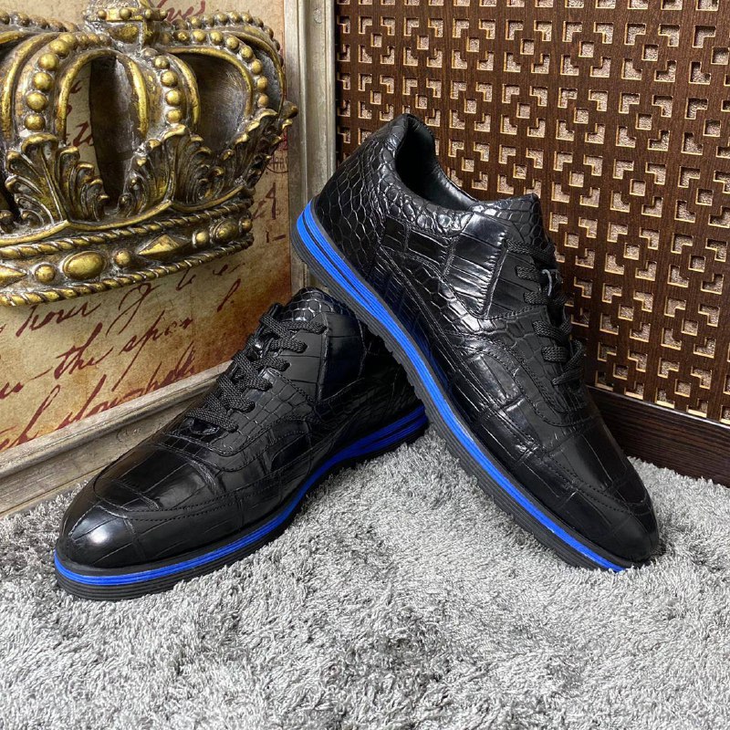 Эти стильные черные кроссовки LUX-48733 от Luxe-crime представляют собой элегантное сочетание классического дизайна и современных материалов. Имитация кожи крокодила придает им роскошный вид, а яркая синяя полоса по подошве добавляет динамичности. Прекрасно подойдут для создания эффектных образов как в повседневной жизни, так и для особых случаев.