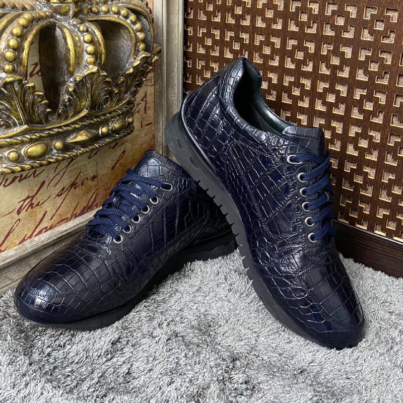 Эти стильные мужские кроссовки LUX-48731 от LUXE-CRIME выполнены в темно-синем цвете с фактурой под кожу крокодила, что придает им изысканный и роскошный вид. Классический дизайн с застежкой на шнурки обеспечивает надежную фиксацию стопы, а современная подошва гарантирует комфорт при ходьбе. Прекрасный выбор для современного мужчины, ценящего элегантность и высокое качество.