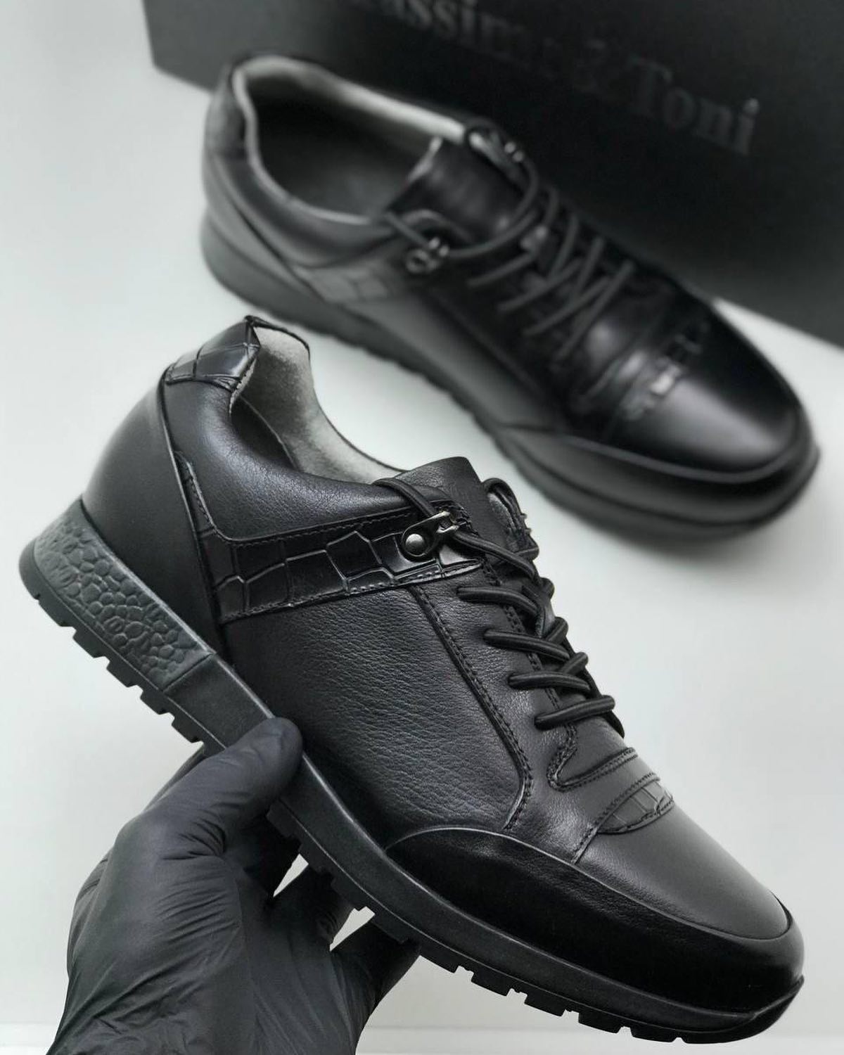 Черные кроссовки LUX-44292 от бренда MASSIMO & TONI представляют собой стильную и удобную обувь. Изделие выполнено в современном дизайне, который прекрасно дополнит как повседневный, так и более официальный образ. Сочетание гладкой кожи и текстурных вставок с имитацией крокодиловой кожи придает кроссовкам особый шарм.