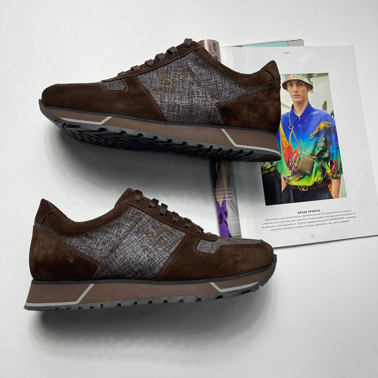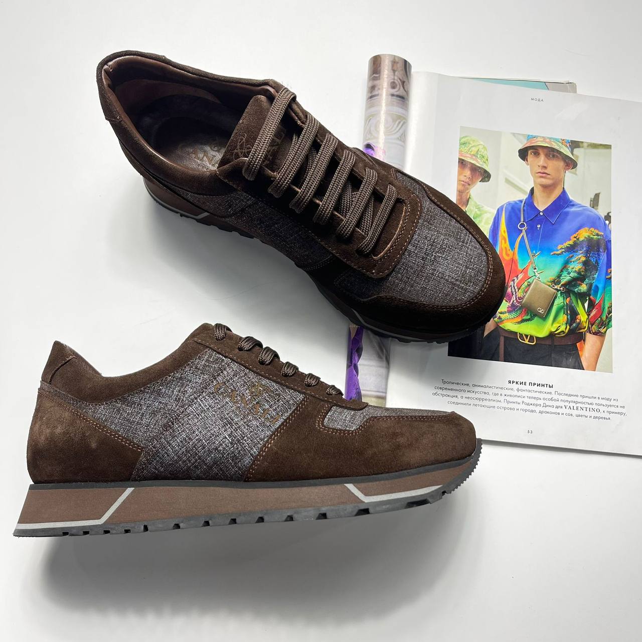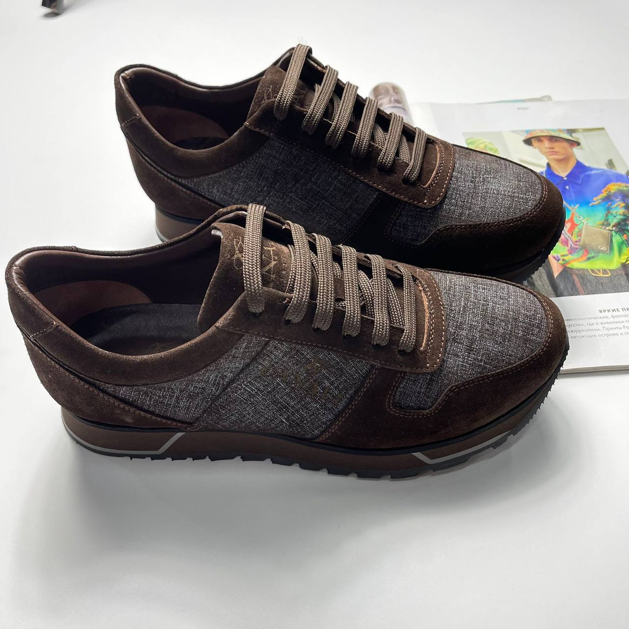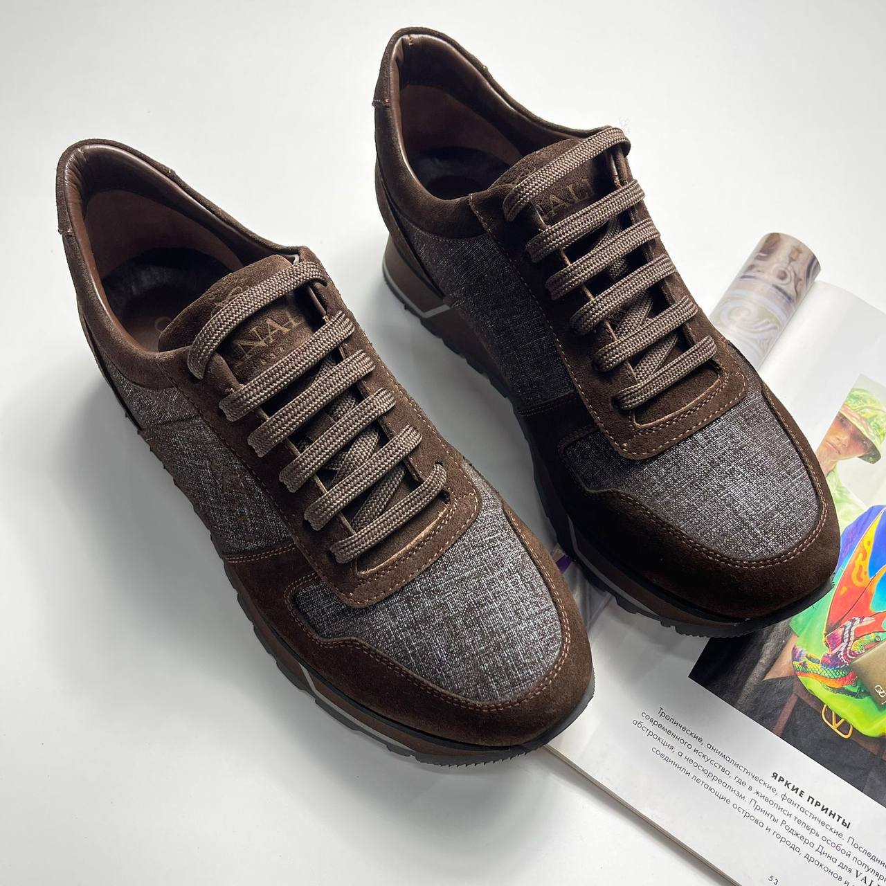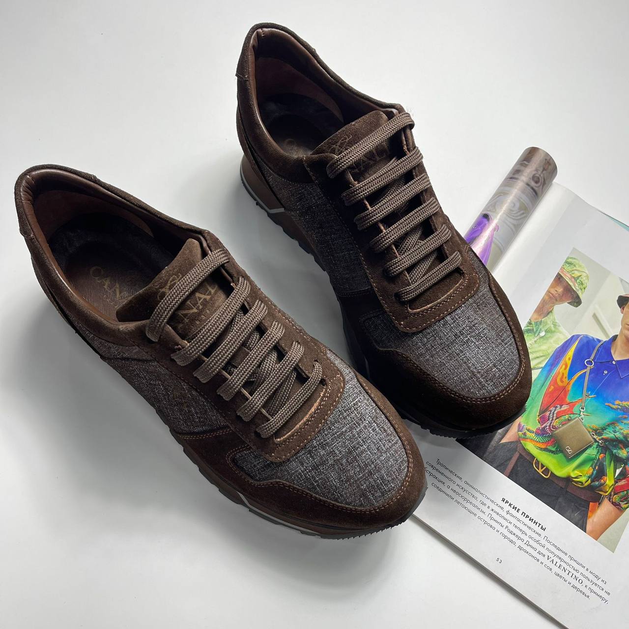 Кроссовки Canali LUX-109660 – это стильная обувь для повседневной носки. Они выполнены в коричневых тонах с деталями из серой ткани, придающими им элегантный вид. Кроссовки подойдут для создания как casual, так и более формальных образов.