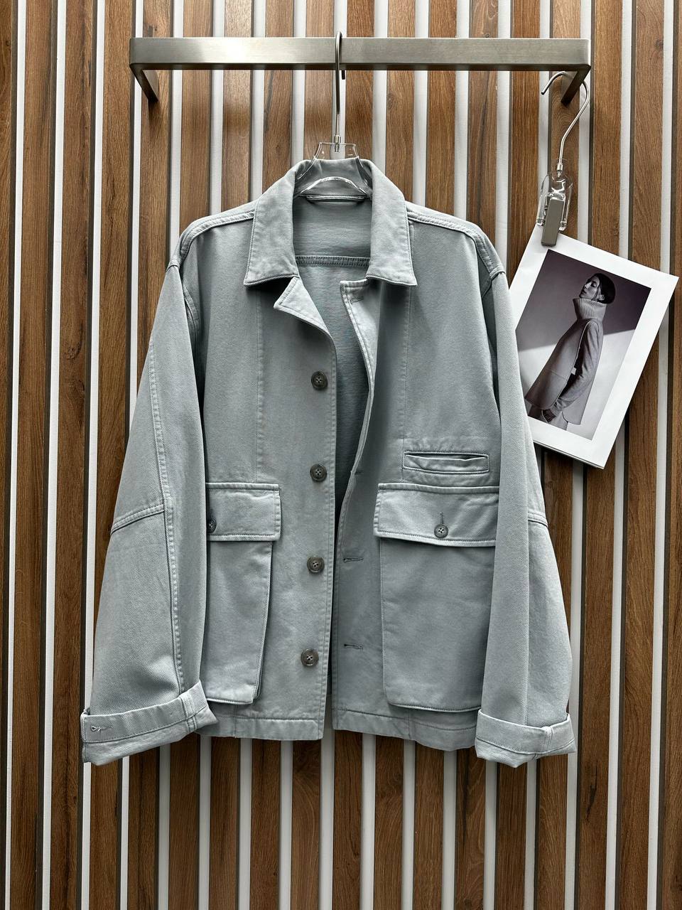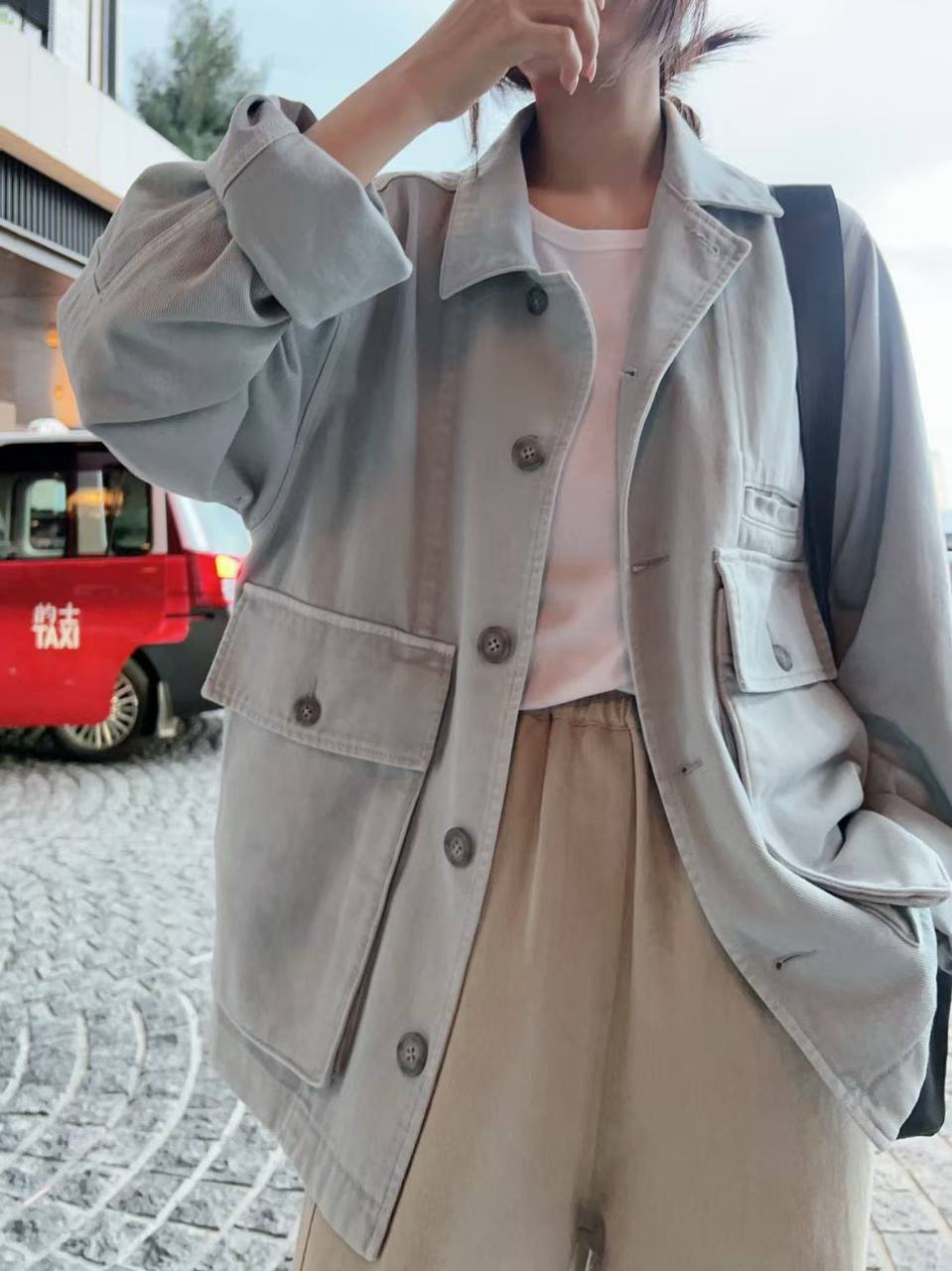 Куртка LUX-117561 — стильная модель в повседневном стиле. Эта куртка небесно-серого цвета с большими накладными карманами и классическим воротником. Идеальна для создания стильного образа на каждый день.