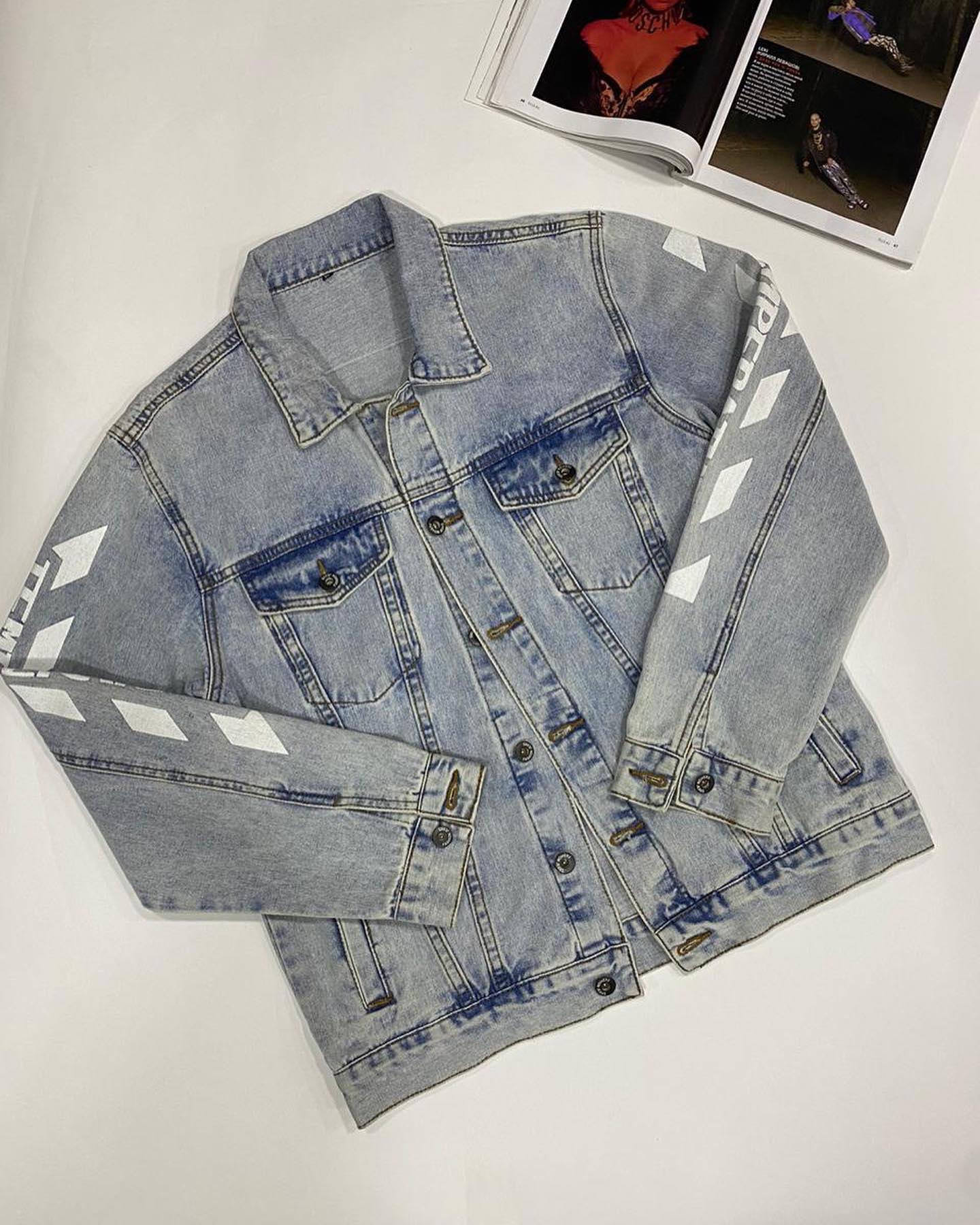 Куртка мужская Off-White™ LUX-32316 представляет собой стильную джинсовую модель с узнаваемым дизайном бренда. Классический крой и легкий голубой оттенок денима делают ее универсальной основой для создания множества образов в стиле casual. Декоративные элементы в виде белых полос на рукавах подчеркивают современный характер изделия.