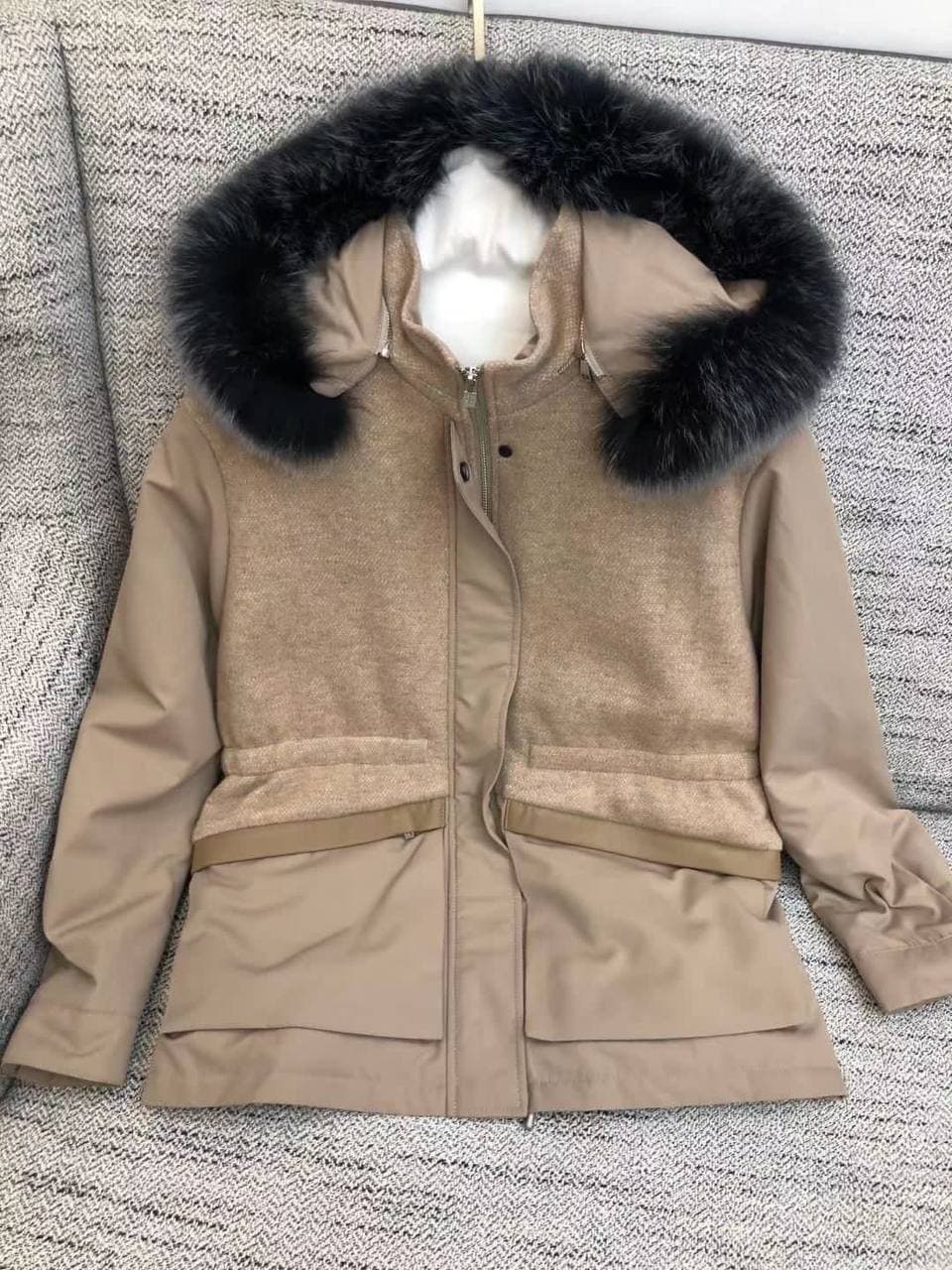 Эта женская куртка LUX-57195 сочетает в себе стиль и функциональность. Изделие выполнено в спокойных бежевых тонах, декорировано объемным капюшоном с меховой оторочкой. Модель идеально подойдет для создания элегантных повседневных образов в прохладное время года.