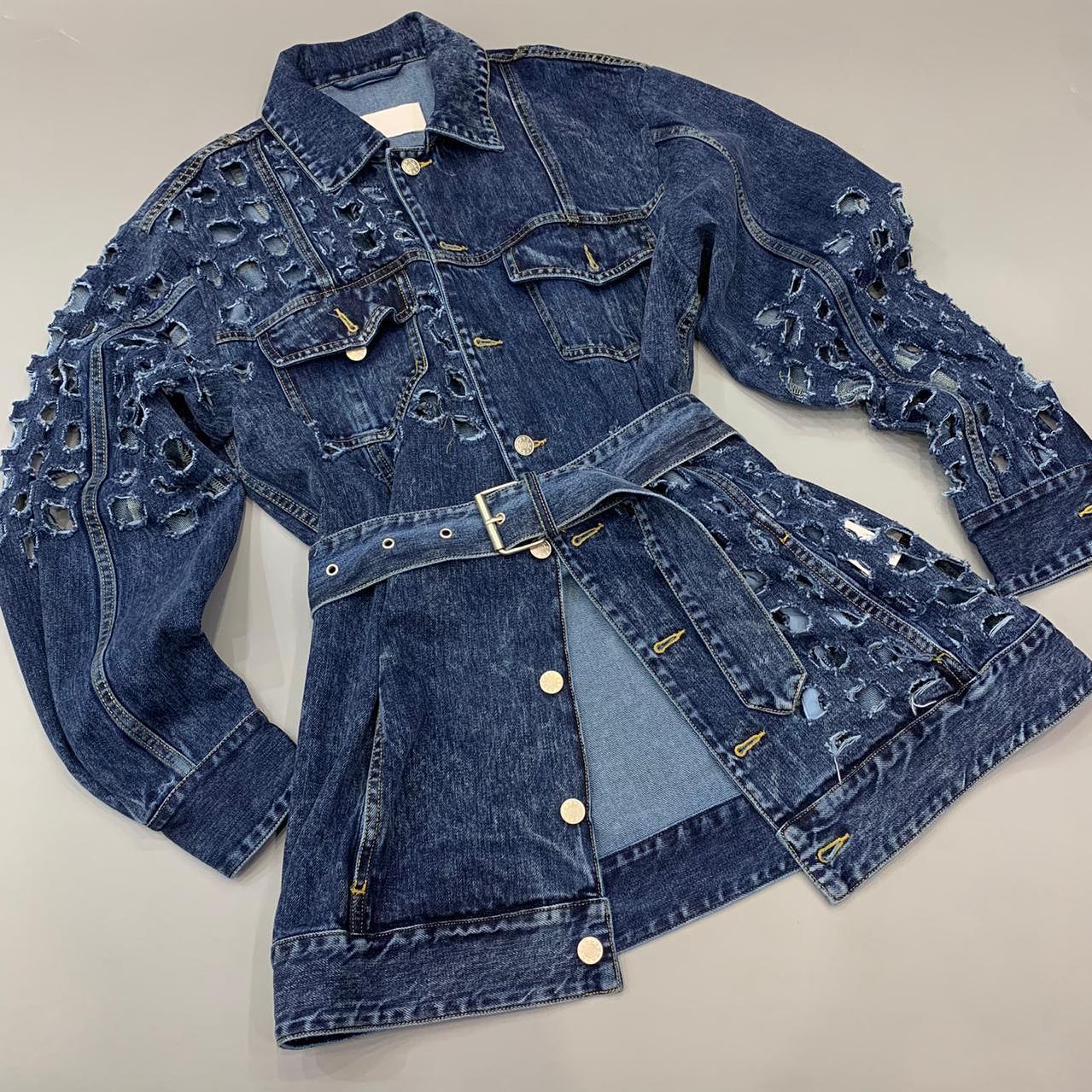 Эта женская куртка LUX-34666 от бренда LUXE CRIME представляет собой стильную джинсовую куртку с оригинальным дизайном. Модель отличается выраженными потертостями и разрезами на рукавах, что придает ей актуальный рваный вид. В комплекте идет широкий джинсовый пояс с металлической пряжкой, подчеркивающий талию и добавляющий образу завершенность. Куртка станет эффектным дополнением к любому повседневному или вечернему наряду, позволяя создать модный и запоминающийся образ.