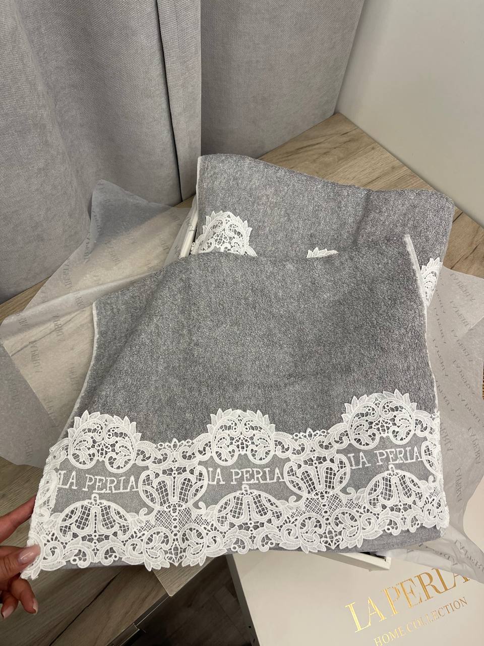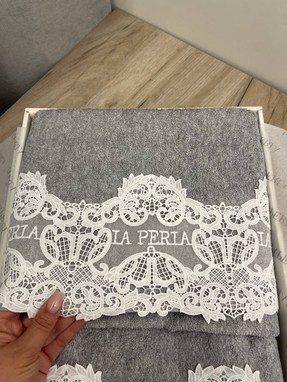 Комплект из трёх полотенец La Perla LUX-104342 — это элегантный набор для ванной комнаты. Комплект выполнен в сером цвете с кружевной отделкой. Эти полотенца придадут изысканность любому интерьеру ванной комнаты.
