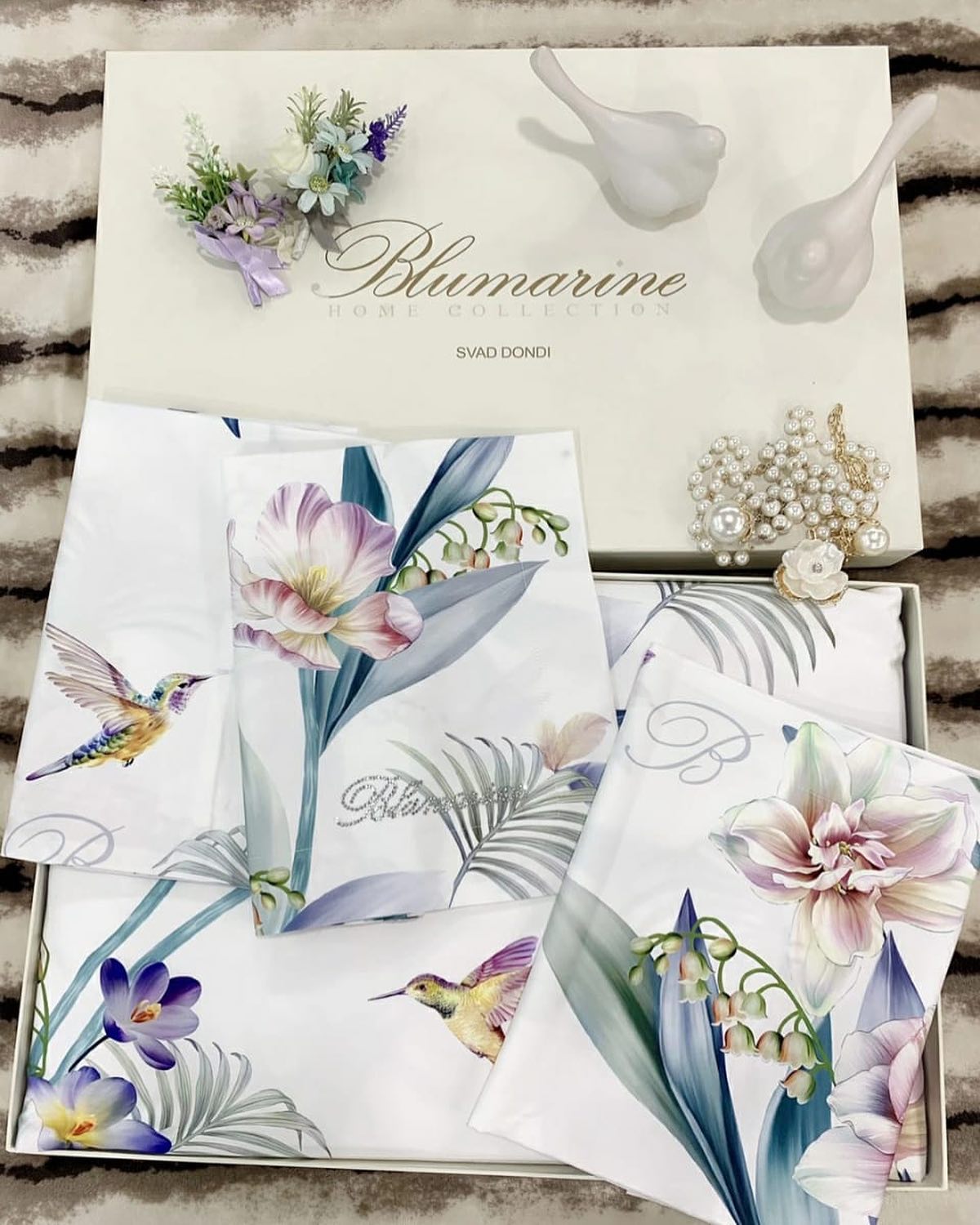 Комплект постельного белья La Perla LUX-41302 представляет собой роскошное решение для вашей спальни, выполненное в изысканном стиле. Этот комплект, украшенный нежными цветочными мотивами и изящными колибри, добавит вашей комнате нотку элегантности и свежести.
