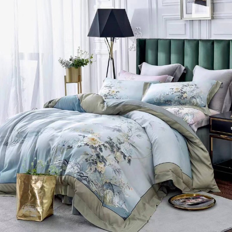 Комплект постельного белья La Perla LUX-48209 представляет собой изысканный выбор для спальни, выполненный в стиле, напоминающем восточные мотивы. Нежные оттенки голубого и серого в сочетании с детальным цветочным принтом создают атмосферу спокойствия и утонченности. Этот комплект способен преобразить вашу спальню, придав ей роскошный и элегантный вид.