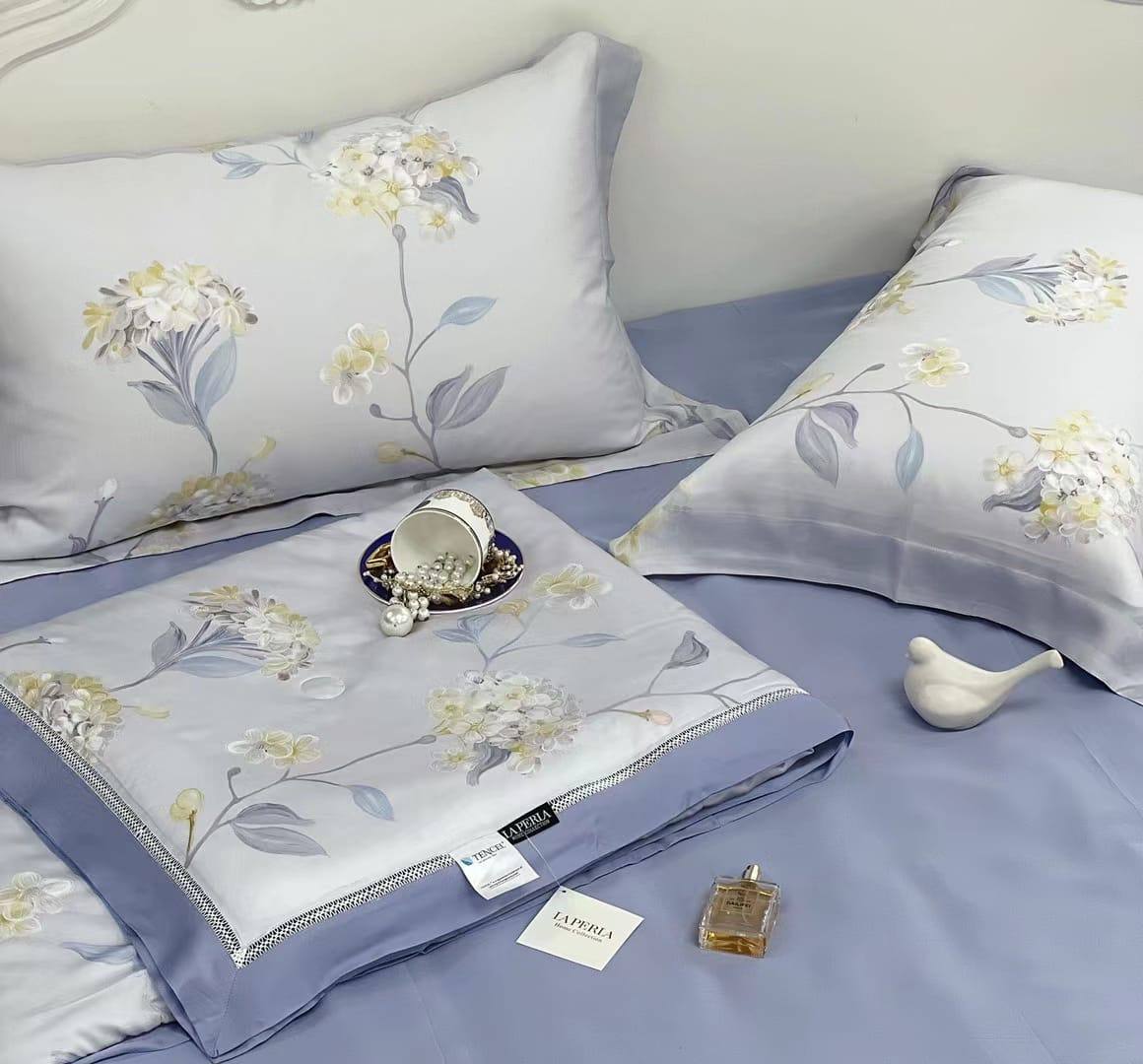 Комплект постельного белья La Perla LUX-70140 представляет собой элегантный набор для спальни, выполненный в нежных тонах. Комплект включает в себя предметы постельного белья с цветочным принтом.
