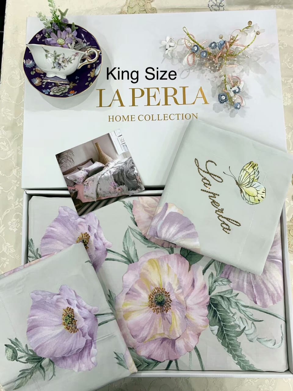 Комплект постельного белья La Perla LUX-24396 представляет собой роскошное дополнение к интерьеру спальни, выполненное в изысканном стиле. Дизайн украшен нежным цветочным принтом с крупными пионами и бабочками, создавая атмосферу утонченности и комфорта. Этот комплект идеально подойдет для тех, кто ценит высокое качество и элегантность в каждой детали домашнего текстиля.